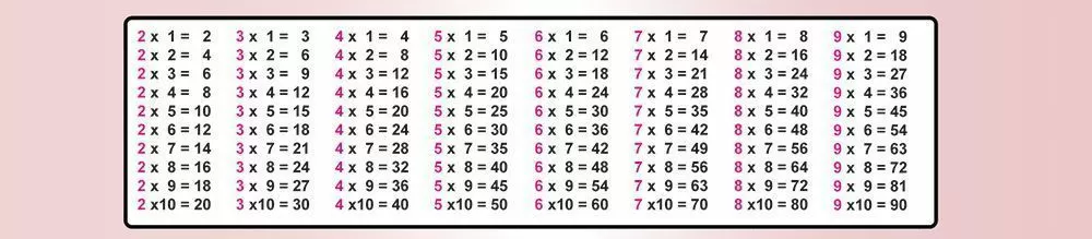 Двусторонняя линейка-закладка из картона, размера 210х46 мм, для книг и учебников с лаковым покрытием с одной стороны и таблицей умножения с другой.