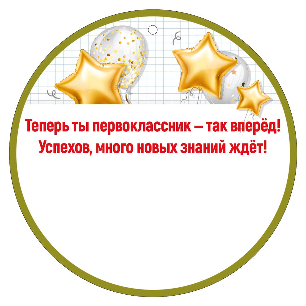 Медаль картонная формата D 96 представляет собой круглое изделие диаметром 96 мм из плотного картона с полноцветной односторонней печатью. На лицевой стороне размещен крупный текст «Я первоклассник» на белом фоне с графической разлиновкой, дополненный изображениями школьного колокольчика с бантом, осенних листьев и декоративных звезд и шаров, что визуально подчеркивает тематику 1 сентября и начала обучения в школе. Используемый картон обеспечивает достаточную жесткость медали, устойчивость к изгибу и сохранение формы при краткосрочной носке на линейке, утреннике или тематическом мероприятии. Диаметр 96 мм хорошо читается на расстоянии и подходит для размещения поверх школьной формы или праздничной одежды, не закрывая значимые элементы костюма. На изделии предусмотрено отверстие для крепления ленты или шнура, что облегчает использование в массовых мероприятиях и ускоряет подготовку к раздаче наград. Медаль поставляется тиражом 20, что удобно для оптовых закупок под потребности классов, параллелей и учебных заведений, а также для формирования ассортимента в розничных магазинах товаров для школы и праздников. Компактный формат и плоская конструкция упрощают хранение и транспортировку: пачки медалей занимают минимум места на складе, не требуют специальных условий и могут перевозиться вместе с другой печатной продукцией. Тематика изделия универсальна для всех образовательных учреждений, что позволяет включать данную медаль в постоянный ассортимент сезонных товаров ко Дню знаний, наборам для первоклассника и готовым решениям для оформления школьных линеек. Для розничного покупателя медаль служит готовым аксессуаром к празднику 1 сентября, может использоваться как элемент фотосъемки, дополнение к подарочному набору ученику или как часть сценария торжественного приема детей в первый класс.