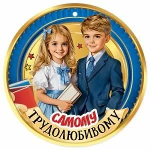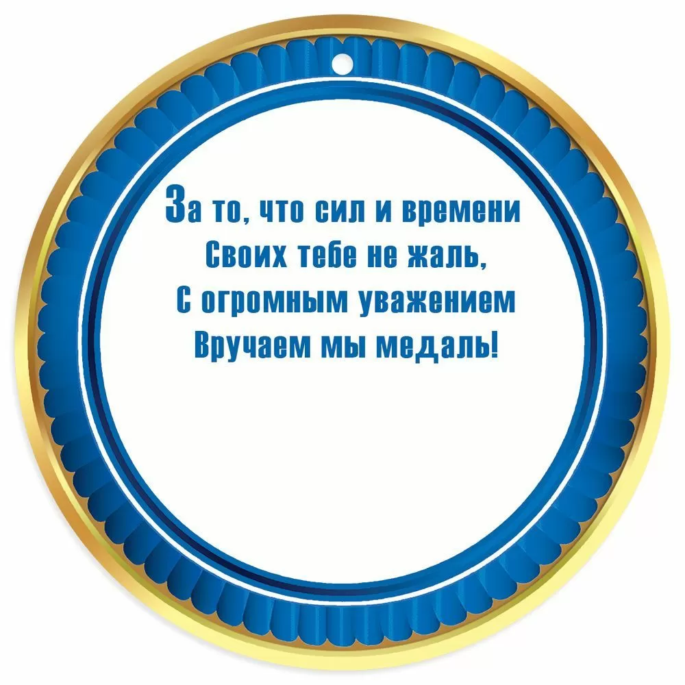 Круглая медаль из картона диаметром 96 мм с отверстием для верёвочки. Яркая печать, глянцевое покрытие.