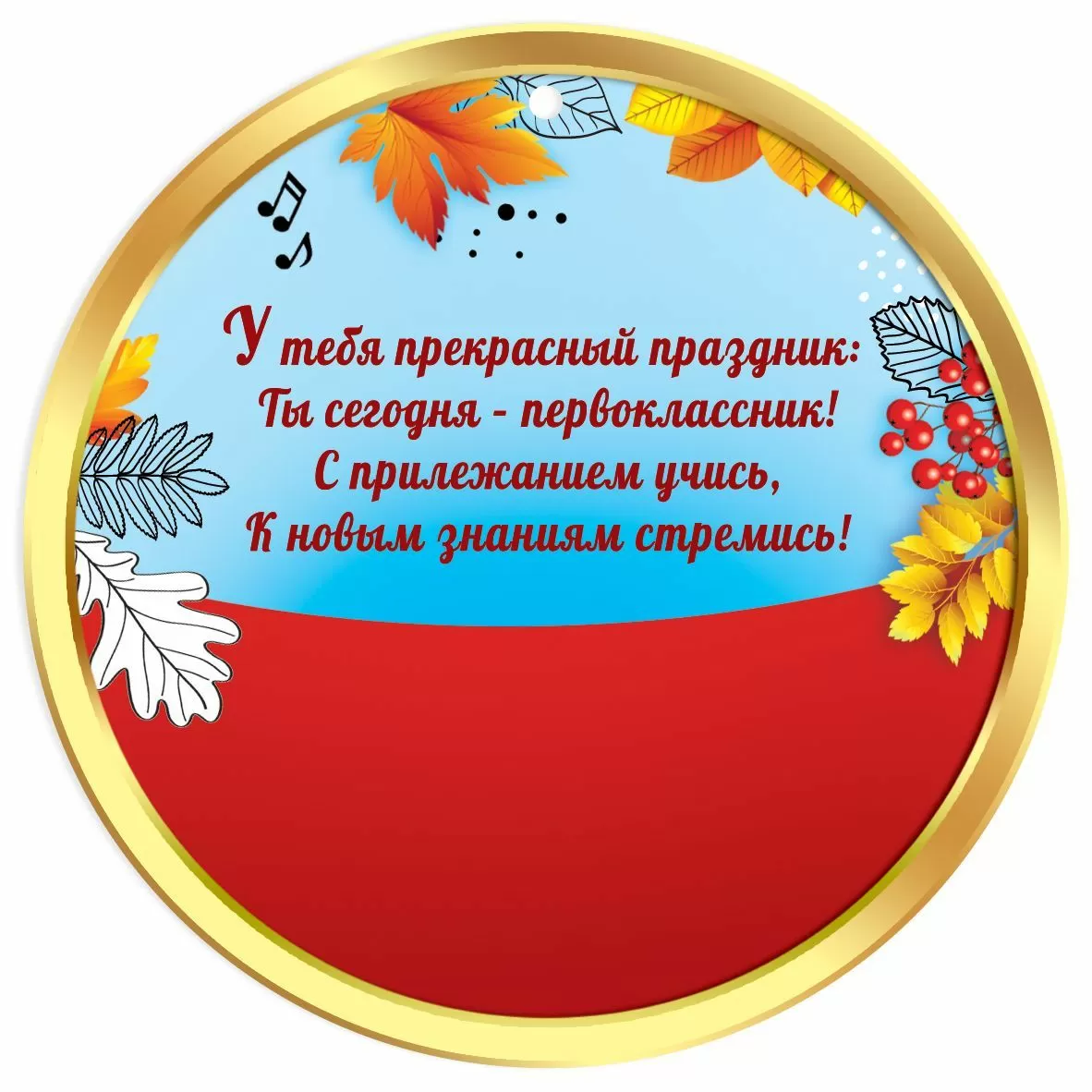 1 сентября - один из самых радостных дней не только для первоклашек, но и для всех учеников, учителей и родителей! Вашему вниманию - похвальные медали из высококачественного картона, которые подарят школьникам еще больше положительных эмоций! Подарочная медаль "Я первоклассник" — это небольшая круглая карточка формата А7. Размеры медали: 96х96 мм. Медаль украшена красочной оригинальной иллюстрацией с изображением мультяшных мальчика и девочки. Такой интересный дизайн очаровывает с первого взгляда! На обороте есть поздравительный текст, который порадует ребенка, настроит его на хорошую учебу и сподвигнет тянуться к новым знаниям. Сверху — небольшое отверстие под декоративный шнурок или атласную ленточку. Обратите внимание — шнурок и лента в комплект не входят! Сувенирная медаль изготовлена из плотного картона. Материал прочный, хорошо держит форму. Изделие не помнется при транспортировке или использовании. Сверху на картонную основу нанесено четкое полноцветное изображение. Благодаря высокому качеству печати и защитному покрытию краски не выцветут. Такой презент будет радовать получателя многие годы! Наградная медаль подойдет для дома, школы, гимназии, лицея и других учебных заведений. Её может вручить учитель, классный руководитель, директор или родители. Награда универсальная, поэтому подойдет и мальчикам, и девочкам. Для использования необходимо продеть ленточку в отверстие. Орден можно вручить в качестве самостоятельного презента либо приложить в дополнение к основному подарку. Также медаль можно использовать в качестве открытки или подарочной бирки.