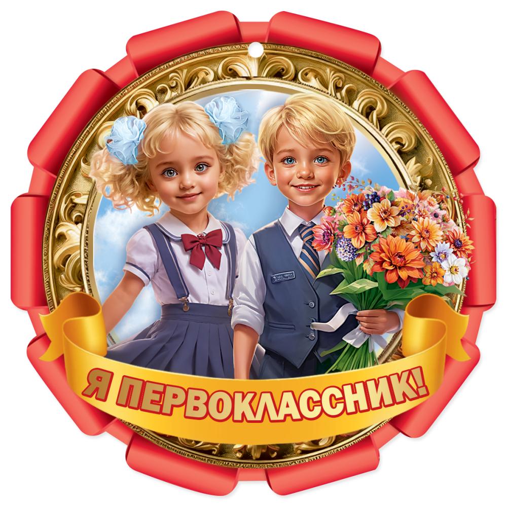 Медаль картонная «Я первоклассник!» представляет собой круглое изделие диаметром 96 мм с фигурной вырубкой по контуру, выполненное из плотного картона, устойчивого к деформации при аккуратной транспортировке и краткосрочном хранении в собранном виде. Лицевая сторона содержит полноцветное изображение школьников в парадной форме и текст «Я ПЕРВОКЛАССНИК!», что делает медаль специализированным атрибутом для оформления мероприятий, связанных с 1 сентября, посвящением в первоклассники и классными часами в начальной школе. Визуальное решение имитирует декоративную рамку с красной лентой по краю, за счёт чего изделие выглядит завершённым без дополнительного декора. На верхней части предусмотрено отверстие для крепления шнурка или ленты требуемой длины, что упрощает подготовку к массовым мероприятиям: медали можно быстро развесить на шею детям или использовать как подвесной элемент в оформлении интерьера класса, фотозоны, стенда достижений. Картонная основа обеспечивает малый вес, безопасное ношение для детей и удобство для организаторов при раздаче и транспортировке больших партий. Размер 96×96 мм позволяет медали хорошо читаться на расстоянии, при этом она не перекрывает форму и не мешает движению ребёнка. Изделие поставляется в упаковке по 20 штук, что удобно для планирования закупок под количество учеников в классе, параллели или группы, а также для формирования ассортимента в розничной точке, ориентированной на сезонный школьный спрос. Поверхность пригодна для аккуратной подписи маркером или ручкой на обороте, что даёт возможность указывать имя ребёнка, дату события или название класса, формируя памятный сувенир. Медаль рассчитана на однократное или эпизодическое использование в рамках школьных и семейных праздников, не требует специальных условий эксплуатации, хранится в сухом помещении в горизонтальном положении, без перегибов и избыточного давления на край.