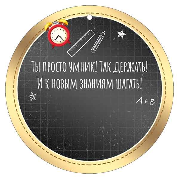 Медали для мальчиков «Умник!» с ярким изображением мальчика. На обратной стороне напечатано напутственное стихотворение. Вверху каждой медальки предусмотрено отверстие для ленточки, шнурка или нитки.