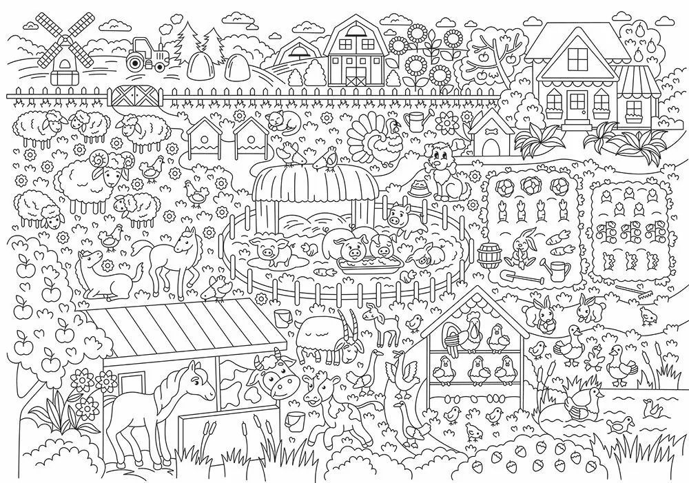 Раскраска большая «Прогулка на ферму»