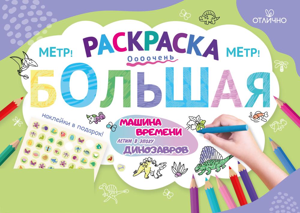 Раскраска большая с наклейками «Машина времени. Летим в эпоху динозавров»