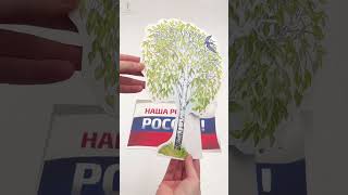 Оформительский набор украшений «Наша Родина — Россия!». В набор входят: красочный плакат формата А4 и 3 вырубные фигурки — мальчик и девочка в русских национальных костюмах, березка. Подставки позволяют поставить фигурки на стол или полку.