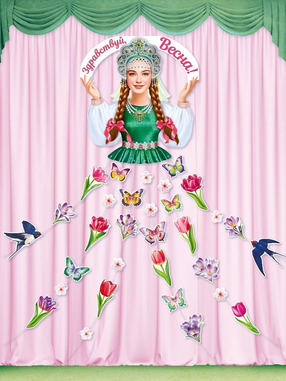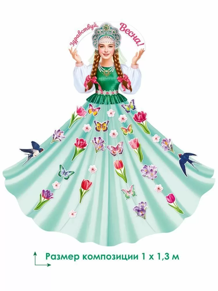 Красочный оформительский набор «Девушка-Весна» станет оригинальным украшением к Масленице, 8 марта или любому другому весеннему празднику! Его можно использовать дома, в детском саду, школе и других учреждениях для оформления интерьера.