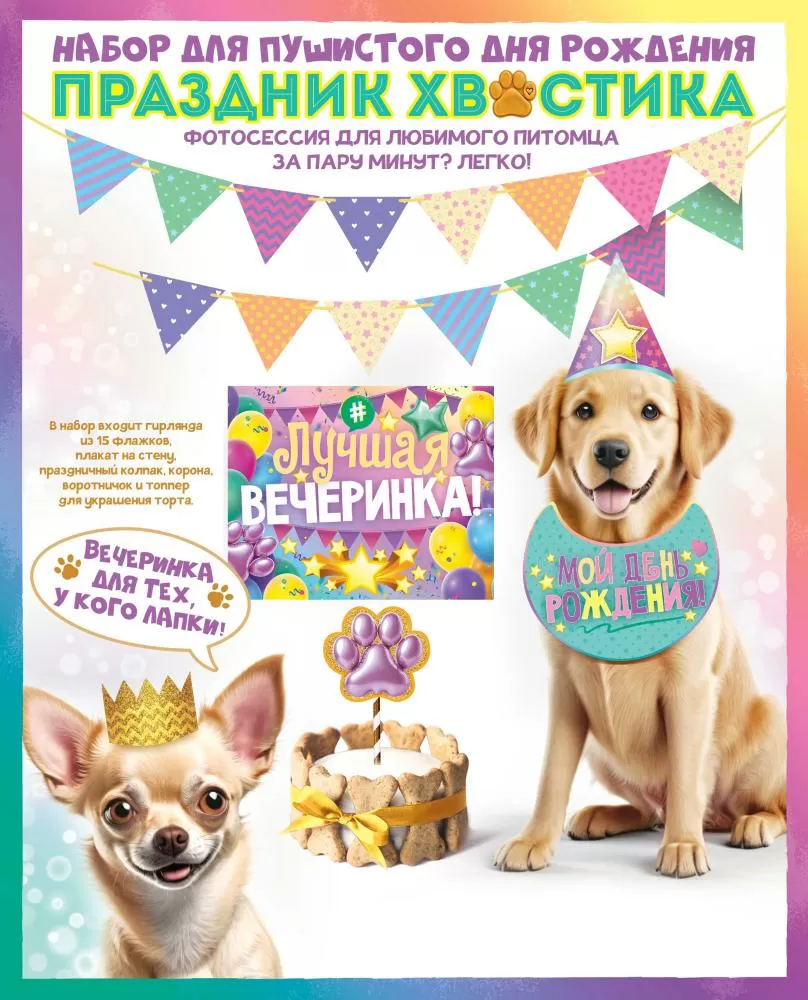 Наборы ко дню рождения питомца «Праздник хвостика» – это уникальный декор для оформления вечеринки! Он подойдет для животных разных видов, пород и размеров.