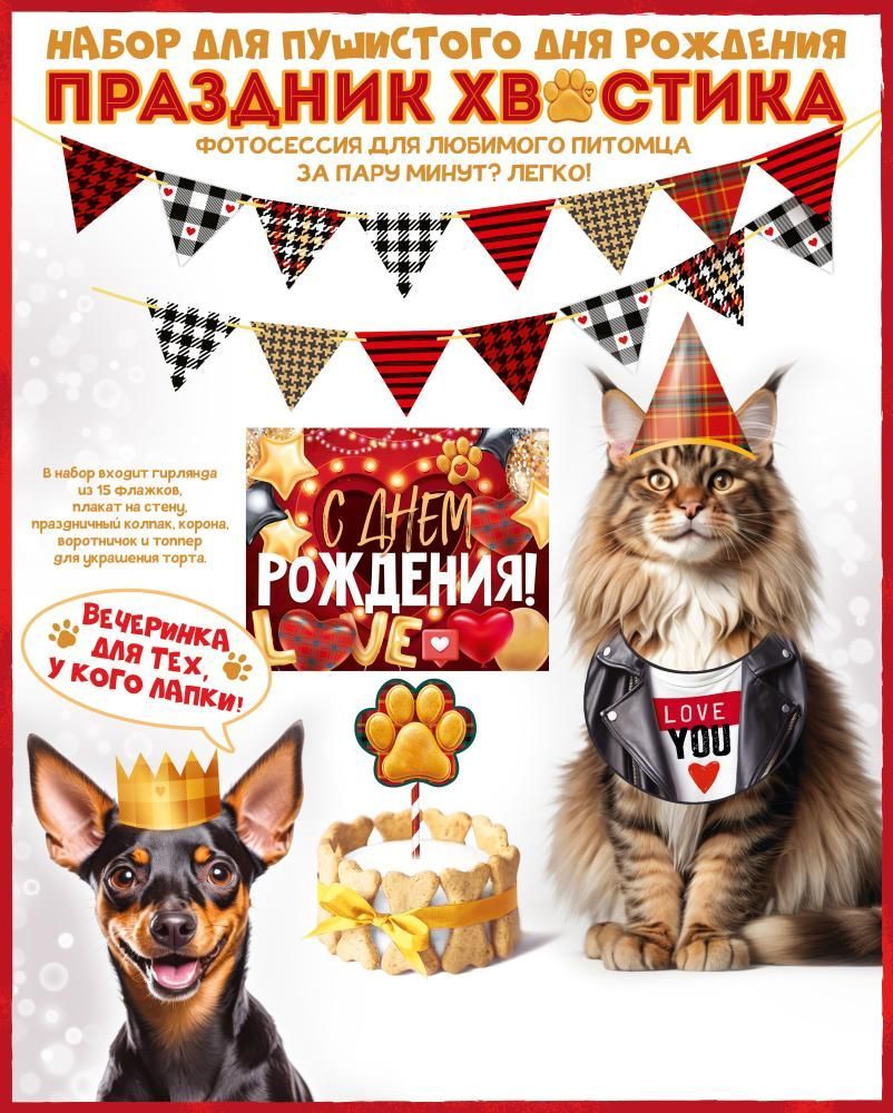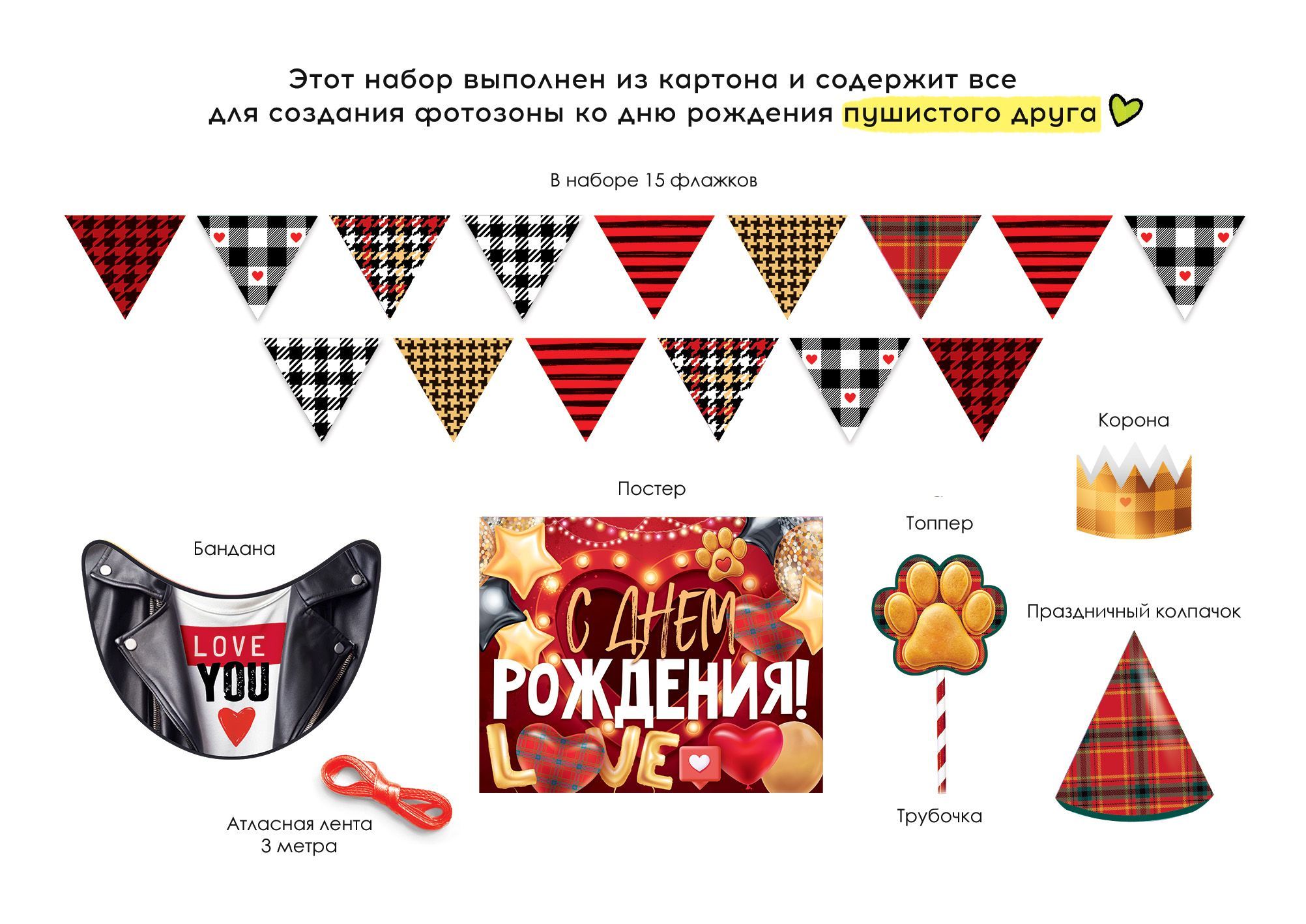 Набор оформительский формата А1 предназначен для создания тематического декора ко дню рождения домашнего питомца и организации фотозоны. Изделие выполнено из плотного картона, что обеспечивает стабильную геометрию элементов, хорошо держит форму при подвесе и устойчиво к деформации при кратковременной транспортировке и хранении. В составе 23 элемента с фигурной вырубкой, включающие крупный плакат и декоративные детали для оформления пространства, аксессуаров и праздничного стола; за счёт вырубки контуры изображений получаются ровными и аккуратными, без необходимости дополнительной подрезки. Готовое изделие имеет ориентировочные габариты 700 × 530 мм, что удобно при размещении на стене, ширме или в витринной зоне и позволяет использовать набор как в небольших помещениях, так и в просторных залах для мероприятий. Конструктивно предусмотрены атласная лента, резинка, трубочка и скотч в комплекте, благодаря чему элементы можно сразу фиксировать на стенах, мебели, фотозоне, а также использовать как топперы и небольшие аксессуары без применения дополнительных расходных материалов. Длина шнура 3000 мм обеспечивает достаточный запас для подвеса гирлянд и комбинирования нескольких элементов в единую композицию, что важно при серийном оформлении залов, витрин или зон выдачи заказов. Наличие отделки подчёркивает печать и визуальные акценты, при этом поверхность остаётся практичной для краткосрочного использования в условиях праздника и стандартной эксплуатации в торговых и сервисных пространствах. Набор поставляется в количестве 1, что удобно для поштучного учёта на складе, формирования кратных партий и гибкого планирования ассортимента по тематикам праздников. Отсутствие печатного текста внутри элементов делает оформление универсальным: визуальные мотивы, связанные с днём рождения питомца, подходят как для домашних мероприятий, так и для использования в груминг-салонах, ветеринарных клиниках, зоомагазинах и фотостудиях, где требуется быстрое и однотипное оформление в едином стиле без необходимости адаптации под конкретный заказ. Набор легко хранить в плоском виде, он не занимает много места, а картонная основа позволяет многократно использовать элементы при аккуратном обращении.