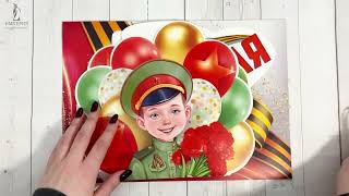 Набор оформительский «С праздником! 9 Мая» (плакат с орденом «Победы», дети в форме с шарами)