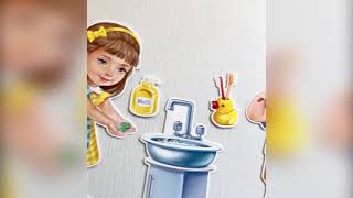 Большой набор вырубных плакатов с двусторонним скотчем для декора помещения и постановок! В комплекте 6 картонных фигурных плакатов: девочка с мылом руках (21х42см), мальчик с щеткой (20х44см), умывальник (17х29см), полотенце (7х17см), расческа (4х14см), тюбик жидкого мыла(6х9см) и двусторонний скотч для крепления плакатов. Также на картонном вкладыше-упаковке предусмотрена игра для самостоятельного вырезания.