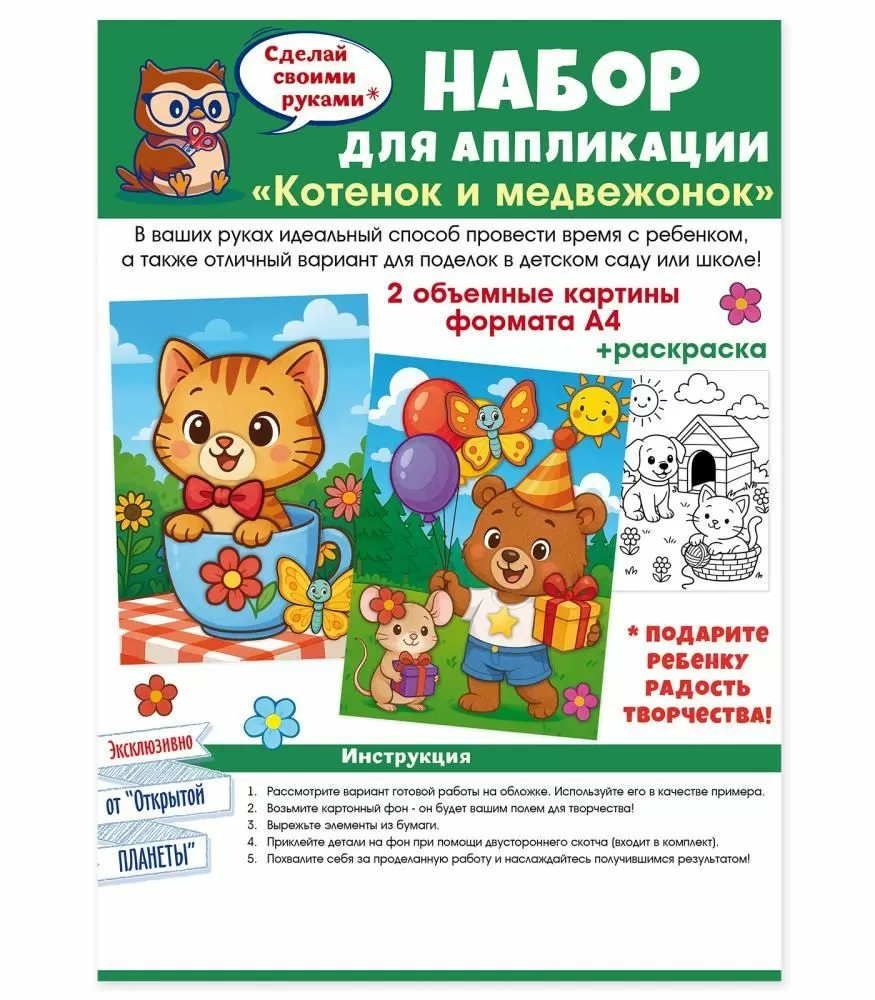 Набор для аппликации «Котенок и медвежонок»