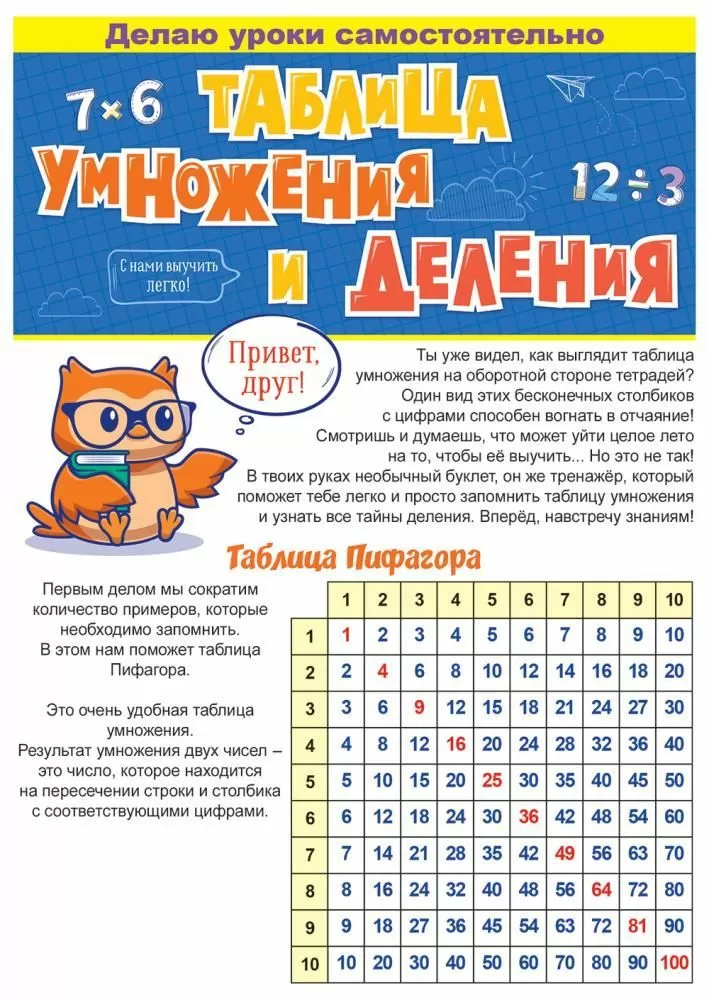 Буклет для шпаргалки «Таблица умножения / Таблица деления»