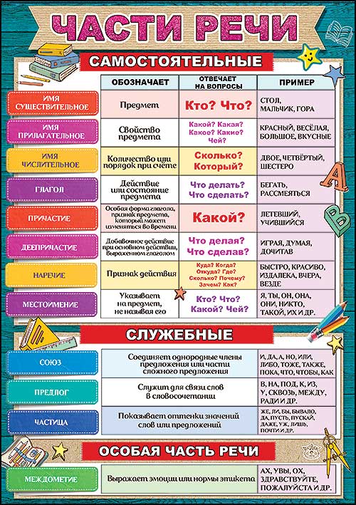 Карточка обучающая «Части речи»