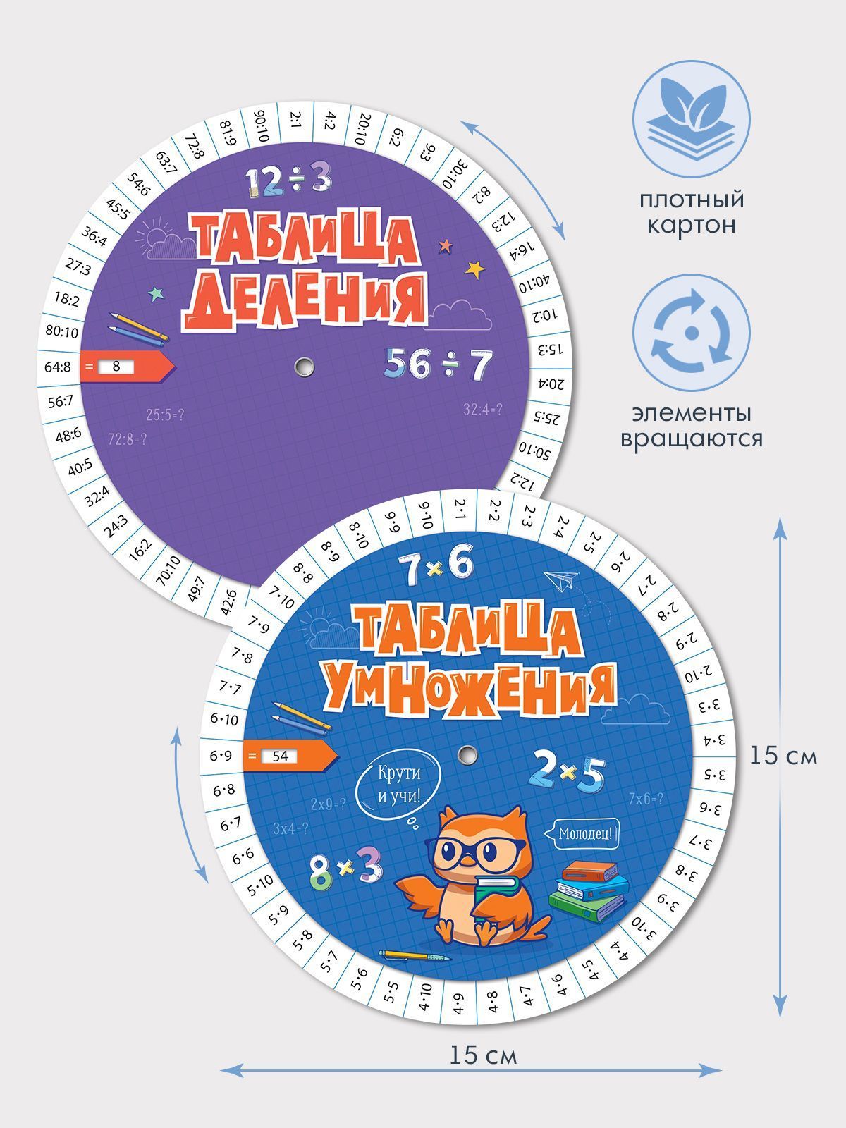 Шпаргалка «Таблица умножения» представляет собой двустороннее учебное пособие формата А5, выполненное из плотного картона с ровной жесткой структурой, устойчивой к многократному использованию в учебном процессе. Конструктив на пикколо обеспечивает подвижный внутренний диск, зафиксированный в центральной точке, что позволяет вращать элементы без деформации изделия и получать точное совмещение окошек с нужными значениями. Диаметр и пропорции изделия рассчитаны таким образом, чтобы шпаргалка свободно помещалась в ученический рюкзак, на парту или в настольный органайзер, при этом сохранялась достаточная площадь для комфортного чтения цифр и обозначений. Длина и ширина готового изделия составляют 150 × 150 мм, что облегчает хранение в стандартных папках, коробах и лотках при складском учете и транспортировке оптовых партий. Поверхность защищена глянцевым УФ-лаком, повышающим износостойкость, стойкость к истиранию и загрязнениям, а также к выцветанию при воздействии света, что важно при интенсивной эксплуатации в школьных классах и учебных центрах. Двустороннее изображение позволяет использовать изделие максимально функционально: стороны могут содержать разные диапазоны примеров или варианты упражнений, за счет чего сокращается количество отдельных пособий в ассортименте и оптимизируется складская матрица. Карточка не содержит текста внутри, все данные нанесены на внешние поверхности, что упрощает визуальный поиск нужного примера и делает шпаргалку удобной для начальной школы и домашнего обучения. Картонная основа совместима с типовыми системами упаковки и паллетирования, не требует специальных условий хранения, сохраняет форму при аккуратной транспортировке и не добавляет значительного веса к суммарной отгрузке. Изделие может использоваться как индивидуальное наглядное пособие для ученика, как элемент оснащения класса, а также как дополнительный материал для репетиторских занятий, позволяя быстро повторять таблицу умножения в игровой форме за счет вращающегося механизма. В одной упаковке — 10 изделий, что удобно для закупки комплектами на класс, учебную группу или розничную выкладку по сериям. Шпаргалка «Таблица умножения» органично дополняет линейку развивающих и учебных материалов, может комбинироваться с тетрадями и плакатами по математике и подходит для включения в готовые наборы для школьников.