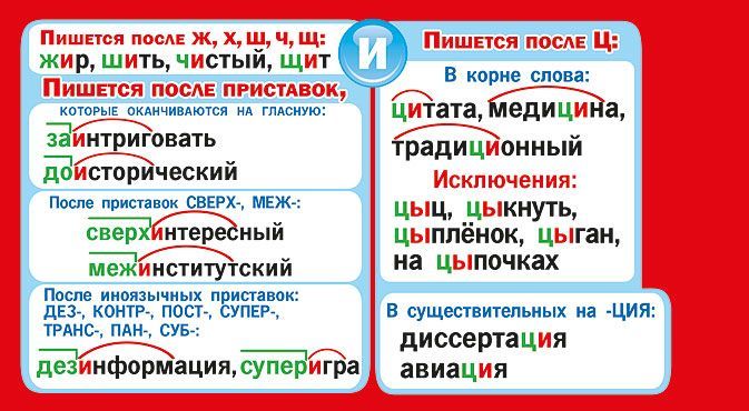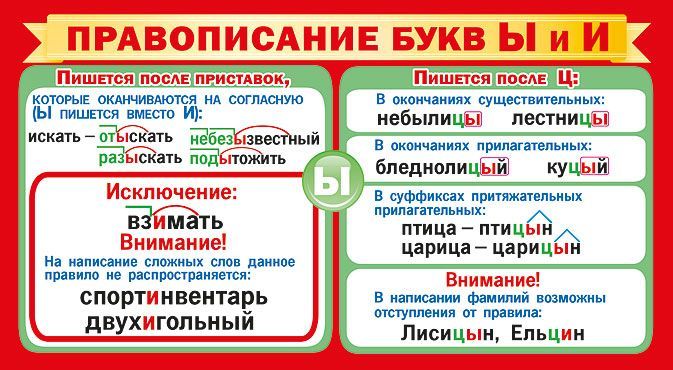 Шпаргалка «Правописание букв Ы и И»