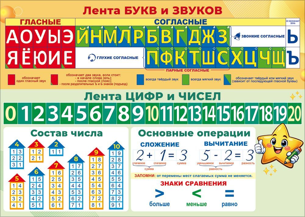 Плакат-шпаргалка «Лента букв + Лента цифр»