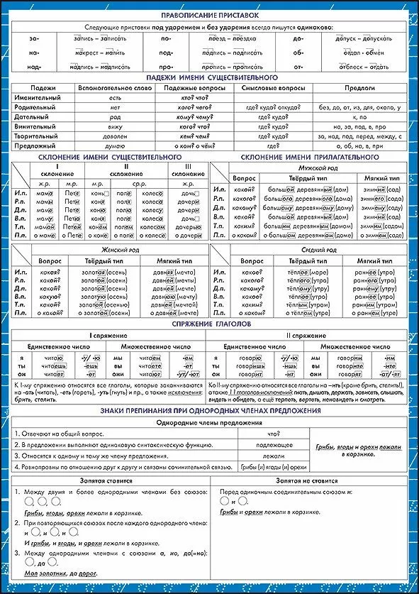 Карточка-шпаргалка формата А5 "Русский язык" - очень полезная вещь каждому ученику начальных классов. Ничего лишнего, что могло бы отвлечь: лаконичный дизайн, строгое цветовое оформление - это именно то, что необходимо для быстрого запоминание нужной информации. Благодаря удобному формату, вы можете вложить карточку в тетрадь или учебник, чтобы в нужный момент она оказалась под рукой. Незаменимый помощник в учёбе.