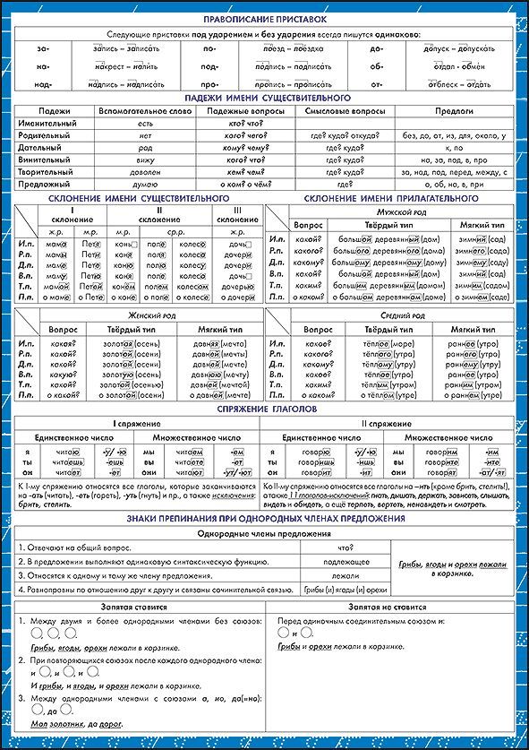 Шпаргалка «Русский язык для начальной школы»