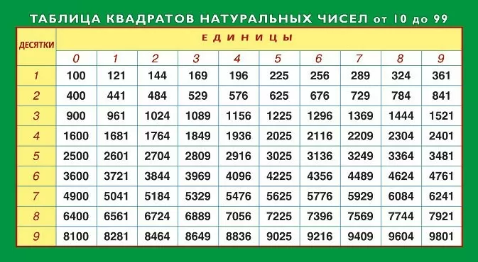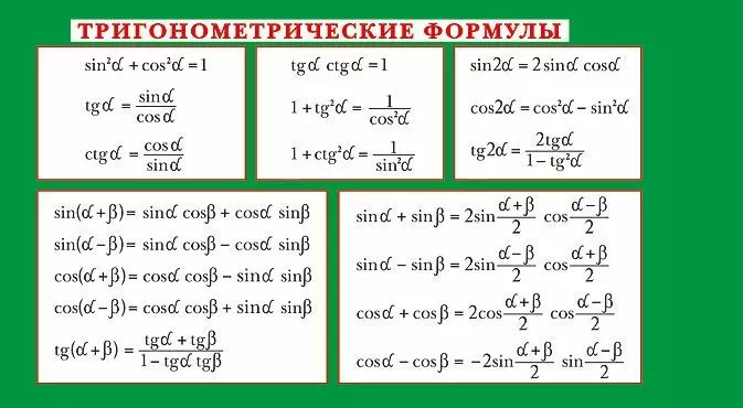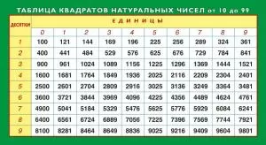 Шпаргалка «Таблица квадратов натуральных чисел/Тригонометрические формулы»