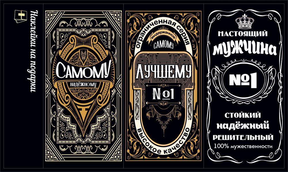 Наклейки на подарки «Самому... Лучшему... №1» (этикеточный дизайн для мужских подарков на чёрном фоне)