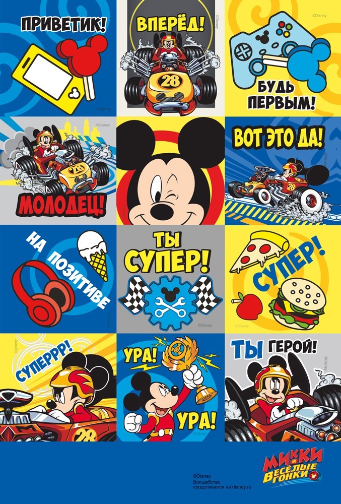 Наклейка формата А5 изготовлена из самоклеящейся бумаги и представляет собой лист с цветными иллюстрациями по мотивам анимационного сериала «Микки Весёлые гонки». На одном листе размещены прямоугольные и квадратные цветные элементы с персонажами в гоночных автомобилях, крупными графическими объектами (наушники, джойстик, мороженое, фастфуд) и короткими мотивационными надписями. Готовое изделие имеет размеры 180×120 мм, что удобно для размещения в стандартных папках, коробках или лотках при складском хранении и транспортировке, а также для выкладки на витрине. Самоклеящаяся бумага обеспечивает надёжное приклеивание к большинству гладких поверхностей: бумаге, картону, ламинированным материалам, пластиковым обложкам, что важно при использовании в детских товарах, полиграфии, сувенирной и подарочной продукции. Плотность и структура материала позволяют листу сохранять форму, не деформироваться при нормальных условиях эксплуатации и выдерживать многократные механические воздействия при сортировке и фасовке в оптовых партиях. Отсутствие дополнительной отделки делает наклейку универсальной для включения в состав наборов канцелярии, детских журналов, развивающих комплектов, подарочных пакетов и призовых наборов для мероприятий. Матовая поверхность без лака облегчает нанесение ручных пометок по краю листа при инвентаризации и маркировке, а также снижает риск бликов при освещении витрины. Яркая многоцветная печать с чётким контуром персонажей и надписей визуально выделяет изделие среди сопутствующих товаров и позволяет использовать наклейку как элемент поощрения в детских конкурсах, учебных программах, тематическом оформлении праздников и игровых зон. Формат и дизайн листа удобны для розничного покупателя: наклейки легко вырезать или отделять по контуру иллюстраций, применять для украшения тетрадей, альбомов, пеналов, коробок для хранения, а также для персонализации детских принадлежностей. В упаковке — 20 изделий, что оптимально для оптовых закупок в торговые сети, детские учреждения, развлекательные центры и организации, формирующие наборы с брендированными детскими позициями. Отсутствие отделки упрощает переработку бумажной основы и делает товар удобным для стандартной складской логистики и учёта.