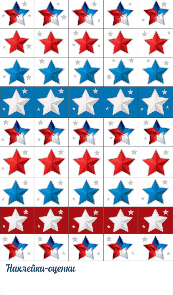 Наклейка-оценка формата А6 представляет собой лист самоклеящейся бумаги размером 155 × 91 мм с равномерно расположенными квадратными стикерами в виде объемных пятиконечных звезд. На одном листе размещены звезды трех основных цветов — красного, синего и белого, а также небольшие дополнительные звездочки нейтрального оттенка, что позволяет визуально дифференцировать уровни поощрения, категории достижений или статусы выполнения задания. Материал основы — стандартная самоклеящаяся бумага с ровной, хорошо проклеенной поверхностью, обеспечивающей надежное приклеивание к большинству гладких оснований: бумаге, картону, ламинированным папкам, пластиковым обложкам, гладким поверхностям мебели и канцелярских принадлежностей. Лист поставляется без отделки, что облегчает разрезание и отделение отдельных элементов, не создавая бликов и не мешая чтению другой информации на носителе, куда наклейки будут помещаться. В упаковке 20 единиц, что удобно для оптовых закупок в образовательные учреждения, детские центры, кружки, а также для формирования запасов в торговых и складских системах. Нейтральный характер изображения без надписей позволяет использовать наклейки в школьных дневниках, тетрадях, журналах успеваемости, на стендах, планах мотивации персонала, в игровых и поощрительных таблицах, при этом единый визуальный стиль облегчает поддержание аккуратного вида документации и наглядных материалов. Точные размеры листа способствуют рациональному хранению: продукция совместима с большинством стандартных конвертов, файлов и ячеек для полочного или коробочного складирования, что важно при большом объеме поставок и распределении по кабинетам или торговым точкам. Отсутствие текстовой нагрузки на самих наклейках делает их универсальными с точки зрения языка и возраста пользователей, а также позволяет применять единый артикул в разных регионах и сегментах без адаптации дизайна.
