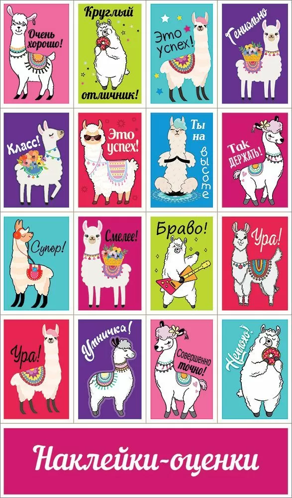 Рады познакомить вас с новинкой - набор поощрительных наклеек оценок с милыми персонажами - ламами! Очаровательный дизайн, приятная цветовая гамма и мотивирующие надписи обязательно придутся по душе как школьникам, так и ребятам дошкольного возраста.