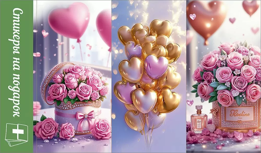 Стикеры на подарок (цветы, шарики)