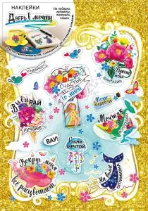 Открой свою «Дверь в мечту!», и ты увидишь, как расцветают сады твоей удачи, и разливается твоё море радости! Выбирай лучшее и излучай солнечное счастье! Эти наклейки вызывают самые тёплые чувства, настраивают на любовь и вдохновение! Они отлично смотрятся на любых гаджетах, кружках, подарках, тетрадях. Легко приклеиваются, снимаются, не оставляя следов. Размер 161х233 мм.