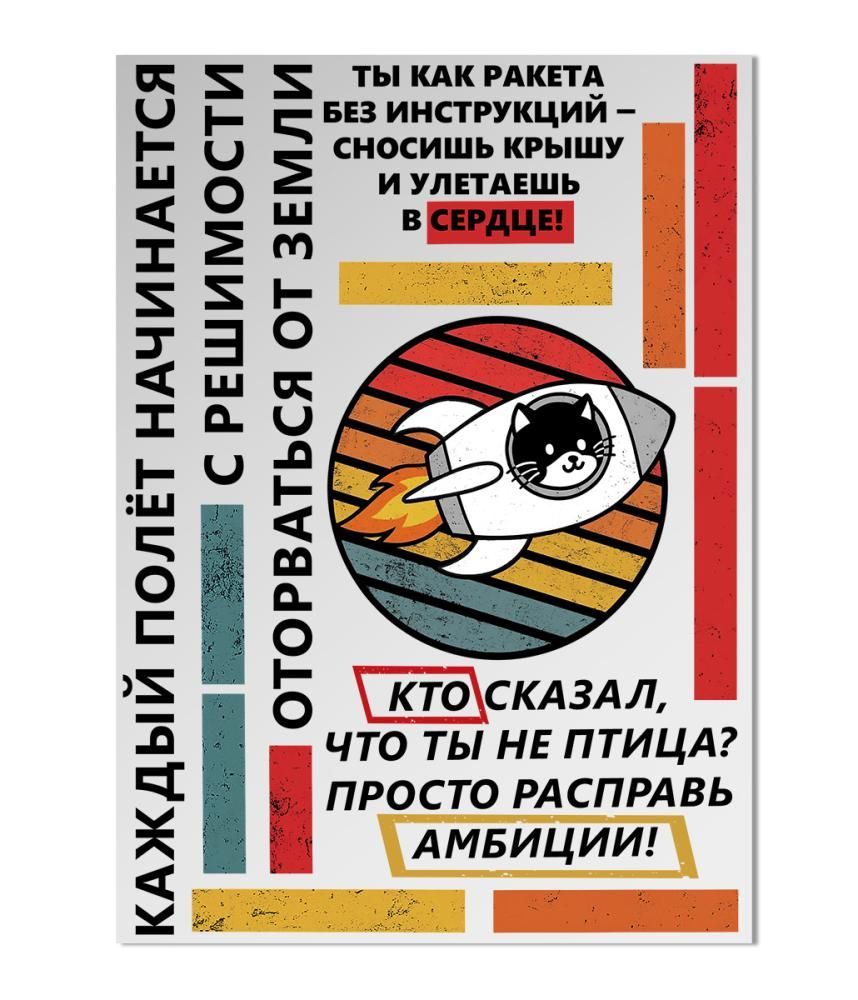 Термонаклейка формата евро представляет собой плоское изделие из ПВХ размером 208×148 мм на подложке, предназначенное для переноса изображения на текстиль и другие термостойкие поверхности. Материал основы подобран с учётом стабильности геометрии при нагреве, что важно при серийном применении в условиях швейных и сувенирных производств, а также при розничном использовании в быту. Плотный ПВХ обеспечивает чёткую проработку рисунка и равномерное распределение клеевого слоя, снижая риск деформации и смещения при термопереносе. Изделие поставляется в количестве 1, что удобно для точного учёта при оптовых закупках и формировании ассортимента поштучных позиций. Конструкция на подложке упрощает хранение, транспортировку и выкладку: наклейка не скручивается, не склеивается, сохраняет печатный слой и контуры. Изображение выполнено в яркой графике: на светлом фоне размещён сюжет с котом в ракете и декоративными цветными полосами, композиция ориентирована на мотивационную тематику и может использоваться для оформления одежды, сумок, рюкзаков, домашнего текстиля, подарочных наборов и промо-продукции. Размер наклейки подходит для размещения на передней части футболок и худи, на спинках детских изделий, на обложках тканевых ежедневников и чехлов. Для оптового сегмента изделие удобно как универсальная позиция для детской, молодёжной и подарочной линейки: единый формат, предсказуемое поведение при термопереносе, совместимость с распространёнными режимами работы термопрессов и бытовых утюгов. Плоская форма облегчает упаковку в стандартные евро-подвесы и конверты, позволяет рационально использовать складское пространство и поддерживать стабильное качество при длительном хранении.