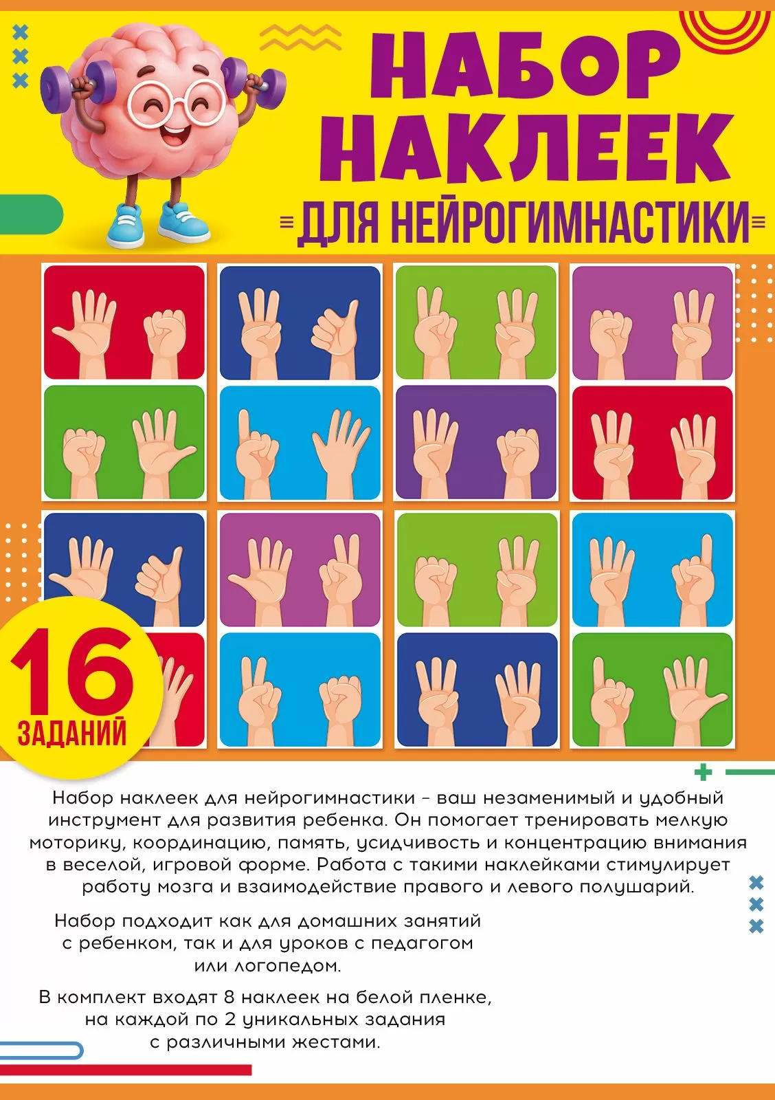 Набор наклеек оформительских «Нейрогимнастика» (жесты)