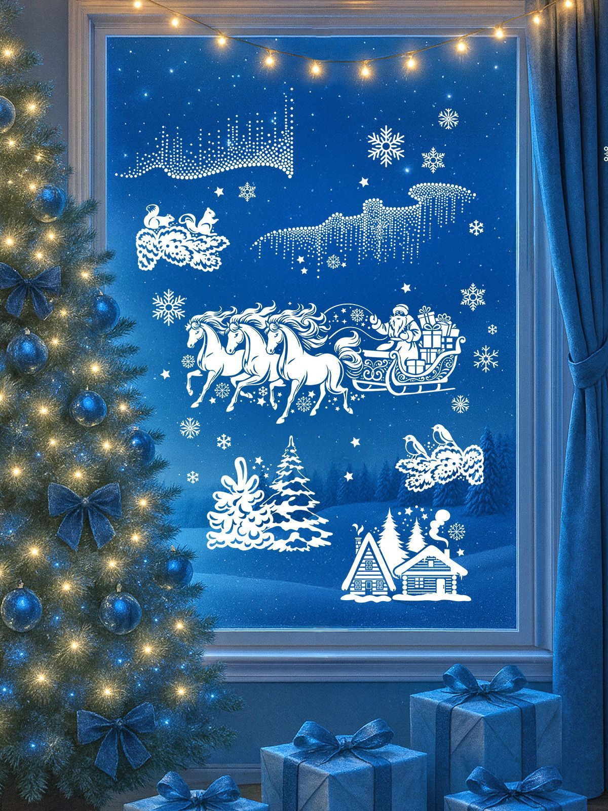 Наклейка оформительская формата А3 представляет собой готовый набор фигурных элементов для сезонного декорирования витрин, торговых залов, офисных и жилых помещений. Изделие изготовлено из ПВХ, что обеспечивает стабильную геометрию при длине 485 мм и ширине 332 мм, устойчивость к деформации, разрыву и выцветанию при длительном экспонировании на свету. На одном листе размещены контурно выделенные фигуры зимней тематики: упряжка с лошадьми и санями с подарками, снежные сугробы с лесными животными и птицами, заснеженные дома и ели, отдельные снежинки, звёзды и фрагменты «северного сияния», что позволяет формировать как единые панорамные композиции, так и точечные акценты в зависимости от площади поверхности. Изображение двустороннее, благодаря чему наклейка одинаково читается снаружи и изнутри стеклянных перегородок и витрин, что особенно важно при оформлении входных групп и окон в торговых объектах. Отделка выполнена пластизолем с блёстками, создающим рельефный декоративный слой с умеренным светоотражением; покрытие устойчиво к истиранию, не осыпается при корректной эксплуатации и удобно для регулярного сезонного использования. Материал сохраняет эластичность, что облегчает аккуратное отделение фигур по контуру и их позиционирование без заломов. Формат А3 и плоская поставка способствуют рациональному хранению на складе и компактной транспортировке, позволяя оптимизировать полочное и упаковочное пространство при оптовых закупках. Наличие 1 листа в упаковке упрощает учет и штучное планирование при формировании ассортимента, а также даёт возможность розничному покупателю подобрать необходимое количество комплектов под конкретный объект оформления. Наклейка не содержит текстовых надписей, поэтому подходит для использования в многоязычной среде и в любых сценариях новогоднего и зимнего декорирования без привязки к конкретным мероприятиям.