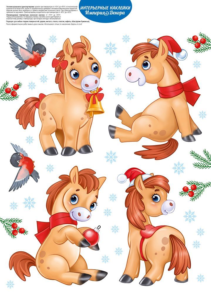Наклейка оформительская формата А4 предназначена для интерьерного и витринного декора с новогодней тематикой и ориентирована на использование в розничной торговле, детских учреждениях, офисах и домашних интерьерах. Основа изделия выполнена из самоклеящейся пленки, обеспечивающей надежное сцепление с гладкими поверхностями: стеклом, ламинированными панелями, пластиковыми и окрашенными основами. Материал не требует дополнительного клея, что упрощает массовое оформление торговых залов и позволяет оперативно менять экспозицию. Двустороннее изображение делает наклейку удобной для размещения на стеклянных перегородках и витринах, рисунок хорошо читается как из помещения, так и с уличной стороны. Печать выполнена полноцветным способом с применением глянцевого УФ-лака и белил, за счет чего рисунок с новогодними лошадками, снегирями, еловыми ветками и снежинками имеет высокую плотность цвета, устойчив к выцветанию и истиранию при стандартной эксплуатации в помещении. Глянцевый слой облегчает удаление пыли и влажную протирку без заметной потери качества изображения. Размер готового изделия составляет 332 × 237 мм, что позволяет планировать выкладку и комбинировать несколько листов в единой композиции на витрине или стенде. В упаковке 10, что удобно для оптовых закупок при оформлении сетевых магазинов, сезонных акций и мероприятий: единый артикул закрывает потребность сразу нескольких торговых точек. Наклейка поставляется плоским листом, компактна при хранении и транспортировке, не требует специальных условий, кроме защиты от прямых солнечных лучей и влаги до момента использования. Отсутствие надписей делает изделие универсальным для различных сценариев оформления: новогодние праздники, детские утренники, зимние фотозоны, оформление игровых комнат и кассовых зон, а также дополнение к тематическим выкладкам товаров.