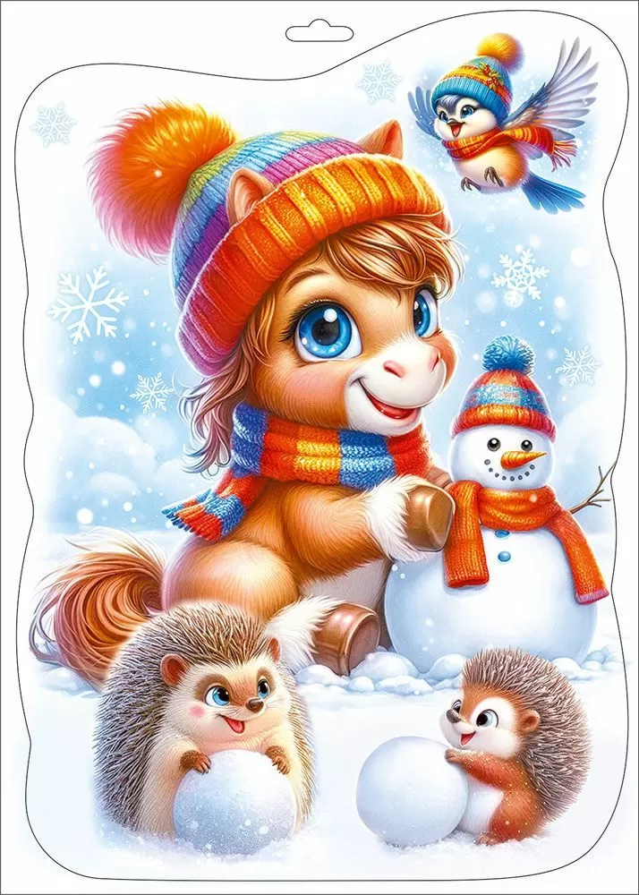 Яркая цветная двусторонняя наклейка «Пони и ёжики со снеговиком» создает неповторимую атмосферу чудесного зимнего праздника и станет незаменимым атрибутом в оформлении любого помещения к новогоднему торжеству! Благодаря прочной клеевой основе, наклейка плотно прилегает к любой поверхности, будь то стены, окна или зеркала. По желанию, можно украсить даже автомобиль. Двусторонняя наклейка с белилами на прозрачном ПВХ легко приклеивается и снимается, не оставляя следов. Наклейки этой серии прекрасно дополняют друг друга и объединяются для создания больших композиций.