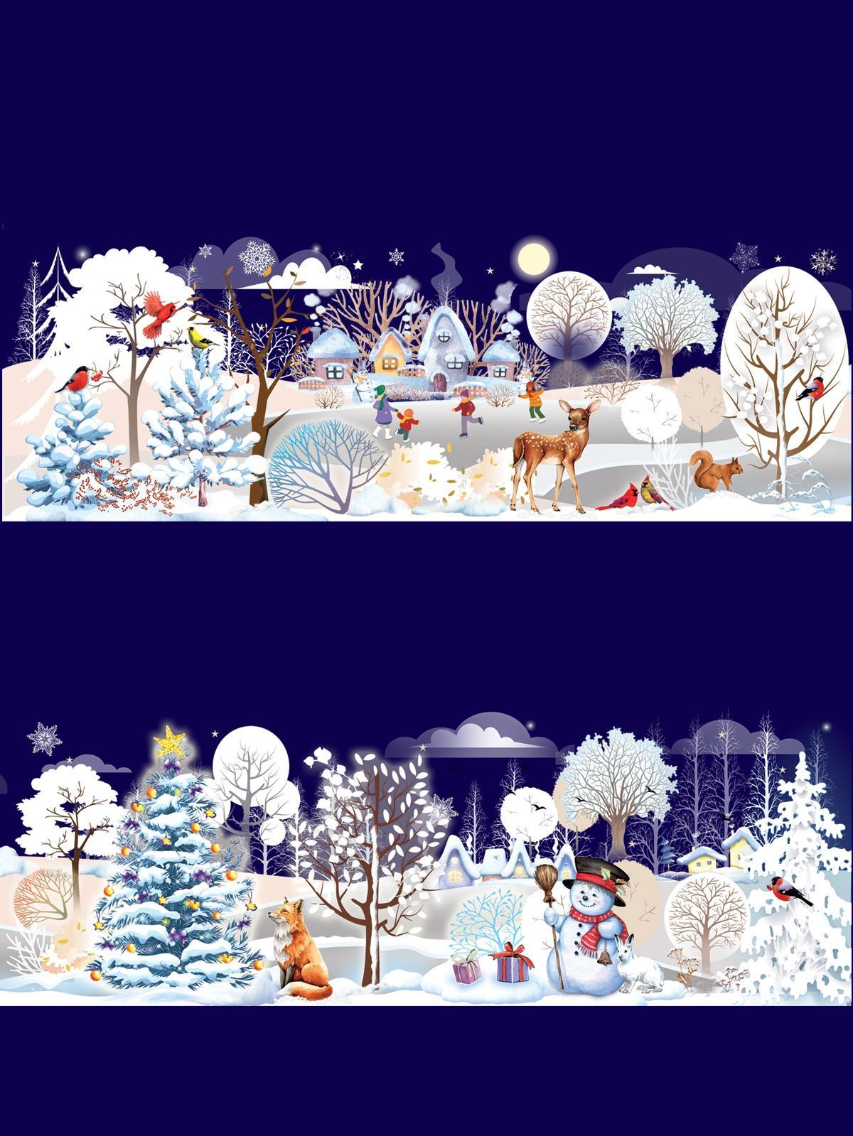 Новогодние наклейки-бордюры на окна (новогодний каток)