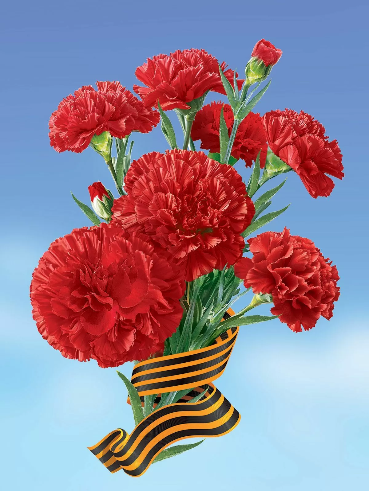 Двусторонняя наклейка «Гвоздики с георгиевский лентой»