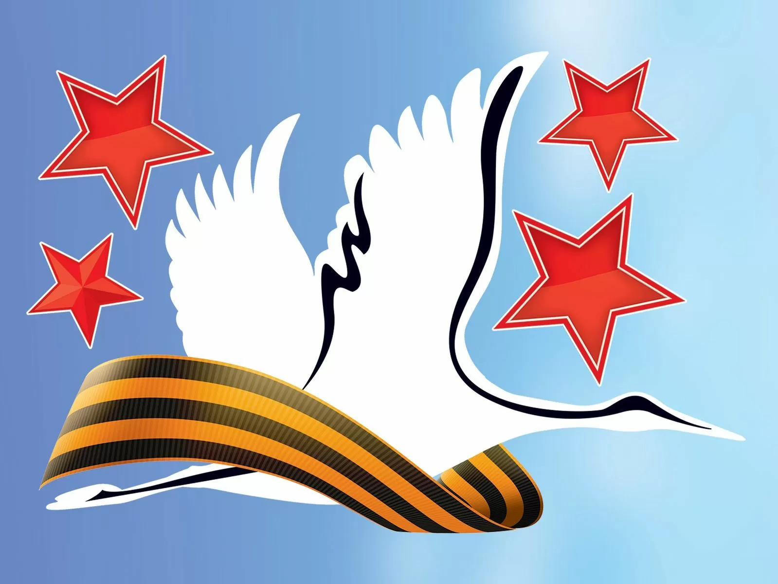 Двусторонняя наклейка «Белый журавль, звёзды и георгиевская лента»