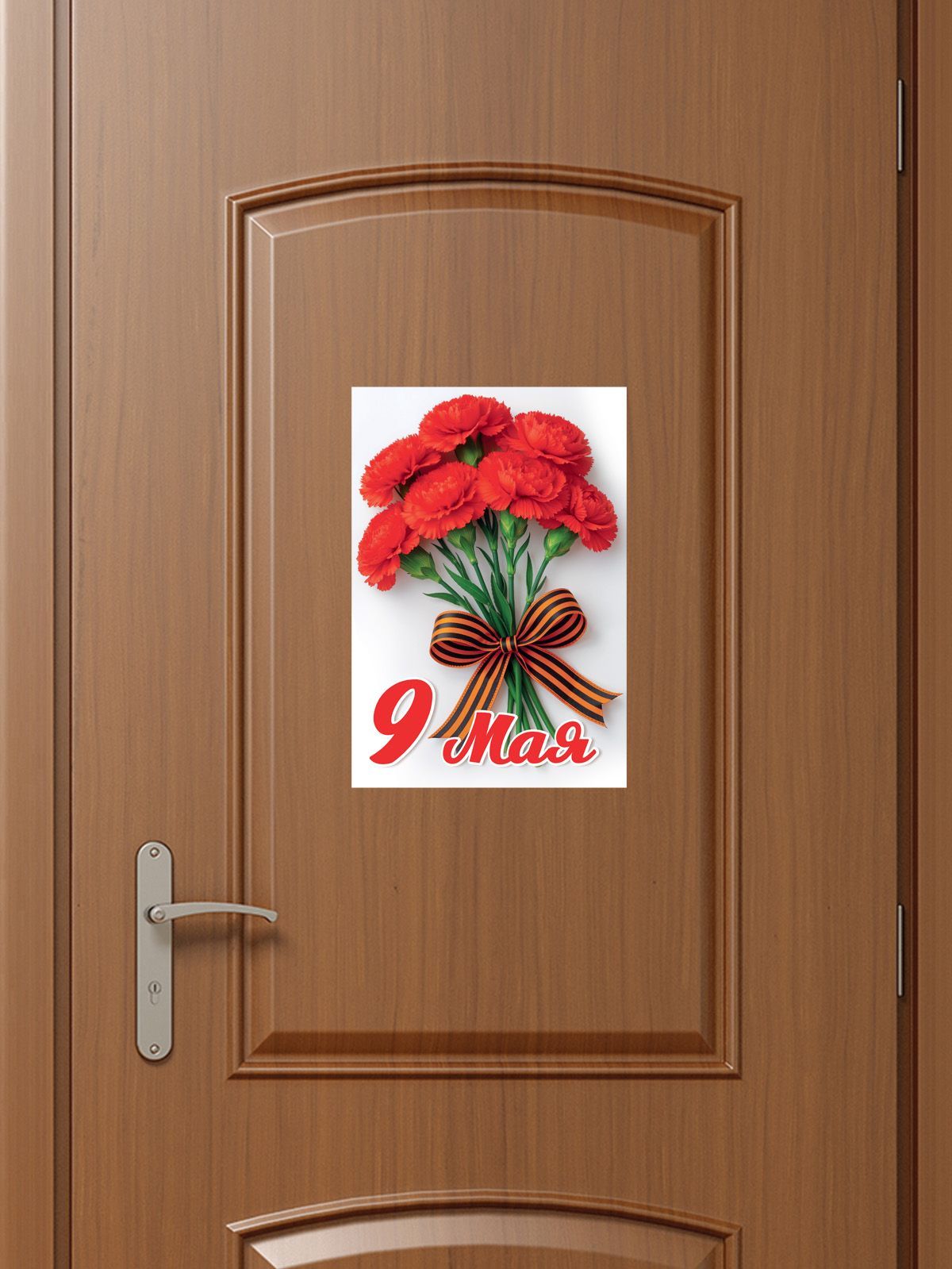 Наклейка оформительская формата А4 изготовлена из самоклеящейся пленки и предназначена для оформления интерьеров и витрин к празднованию 9 Мая. На лицевой стороне размещено полноцветное изображение букета красных гвоздик с георгиевской лентой на светлом фоне и крупной надписью «9 Мая», что позволяет использовать изделие как самостоятельный элемент декора без дополнительного оформления. Пленка обеспечивает надежную адгезию к большинству гладких поверхностей: стеклу, окрашенным стенам, пластиковым панелям, дверям, мебельным фасадам. Размер готового изделия 232 × 158 мм позволяет комбинировать наклейку с другими элементами праздничного оформления, равномерно заполняя пространство и сохраняя читаемость изображения на расстоянии. Лицевая сторона покрыта глянцевым УФ-лаком, что повышает стойкость к выцветанию, истиранию и воздействию влаги, делает цвета более насыщенными и облегчает сухую и влажную уборку поверхности. Такая конструкция удобна для оптовых закупок: наклейки устойчивы к механическим нагрузкам при транспортировке, не деформируются при стандартных условиях складского хранения и сохраняют товарный вид в течение всего сезона продаж. В упаковке 10 единиц, что позволяет формировать как розничный, так и корпоративный ассортимент для школ, детских садов, офисов, торговых залов и учреждений культуры. Для розничного пользователя наклейка обеспечивает быстрый способ оформить окно, дверь, стенд или информационный щит к памятной дате без использования дополнительных крепежных материалов; при аккуратном нанесении пленка ложится ровно, не образуя пузырей, а гладкая поверхность облегчает позиционирование и уход в процессе эксплуатации.