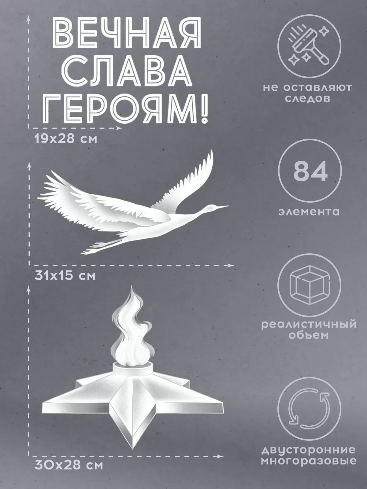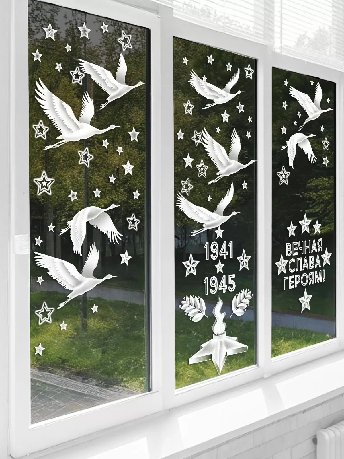 Набор декоративных наклеек большого формата идеально подойдет для украшения окон или витрин магазинов к такому значимому для каждого россиянина празднику как День Победы. Они многоразовые, двусторонние, выглядят стильно и реалистично.