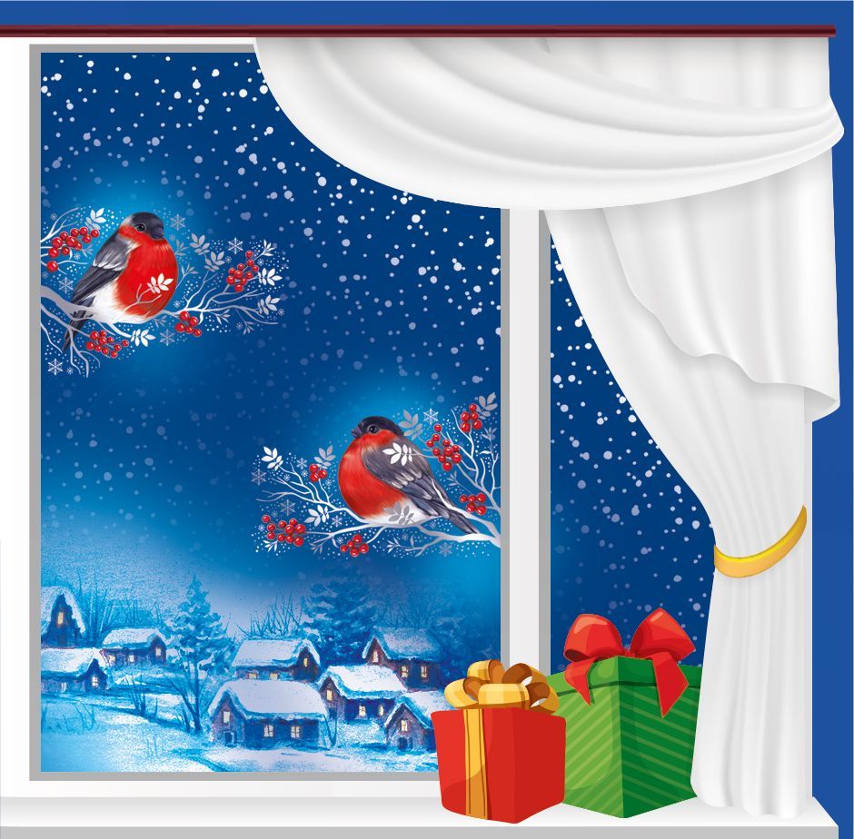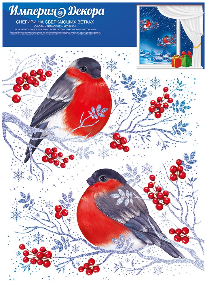 Наклейки оформительские «Снегири на сверкающих ветках»