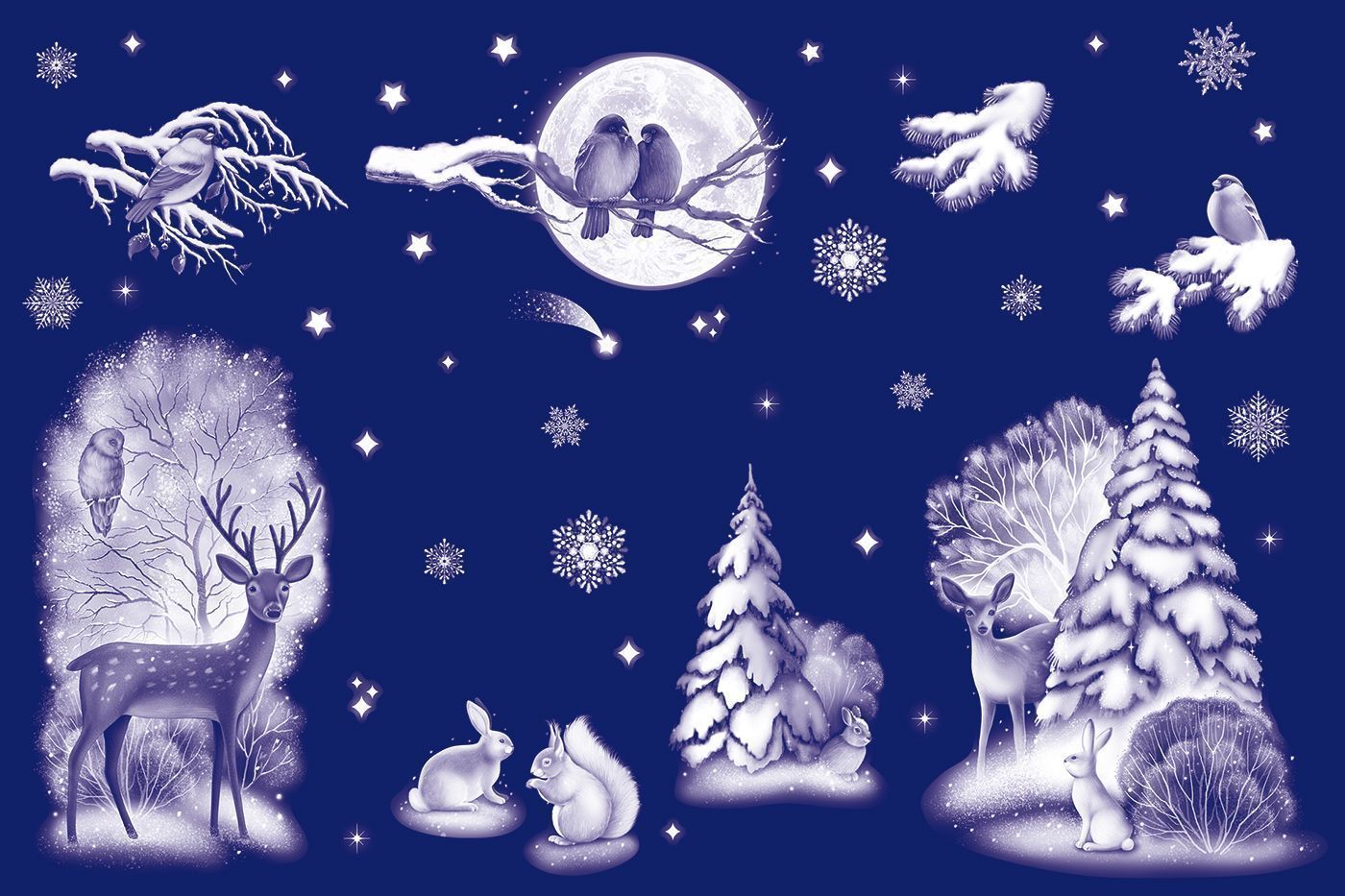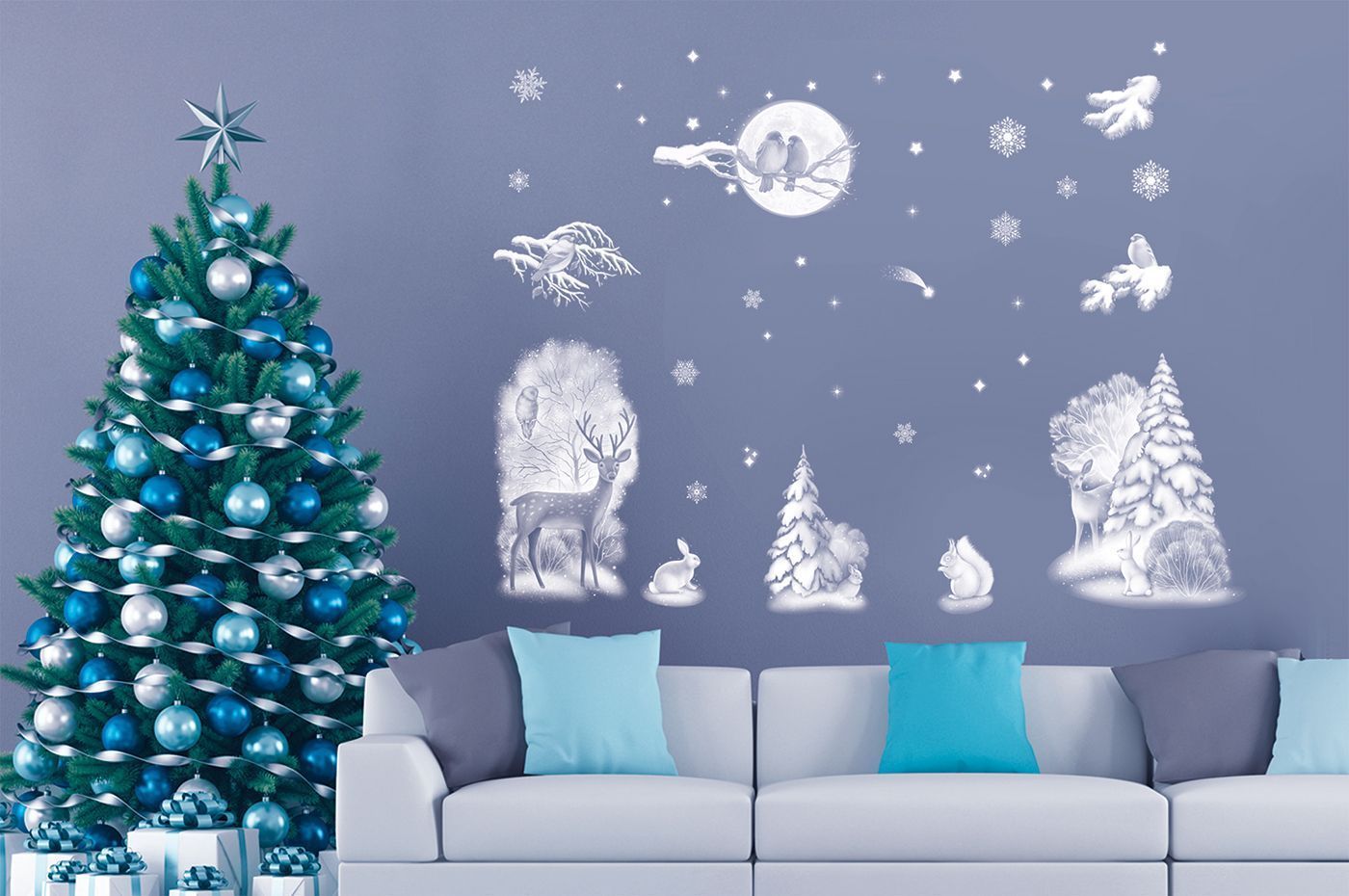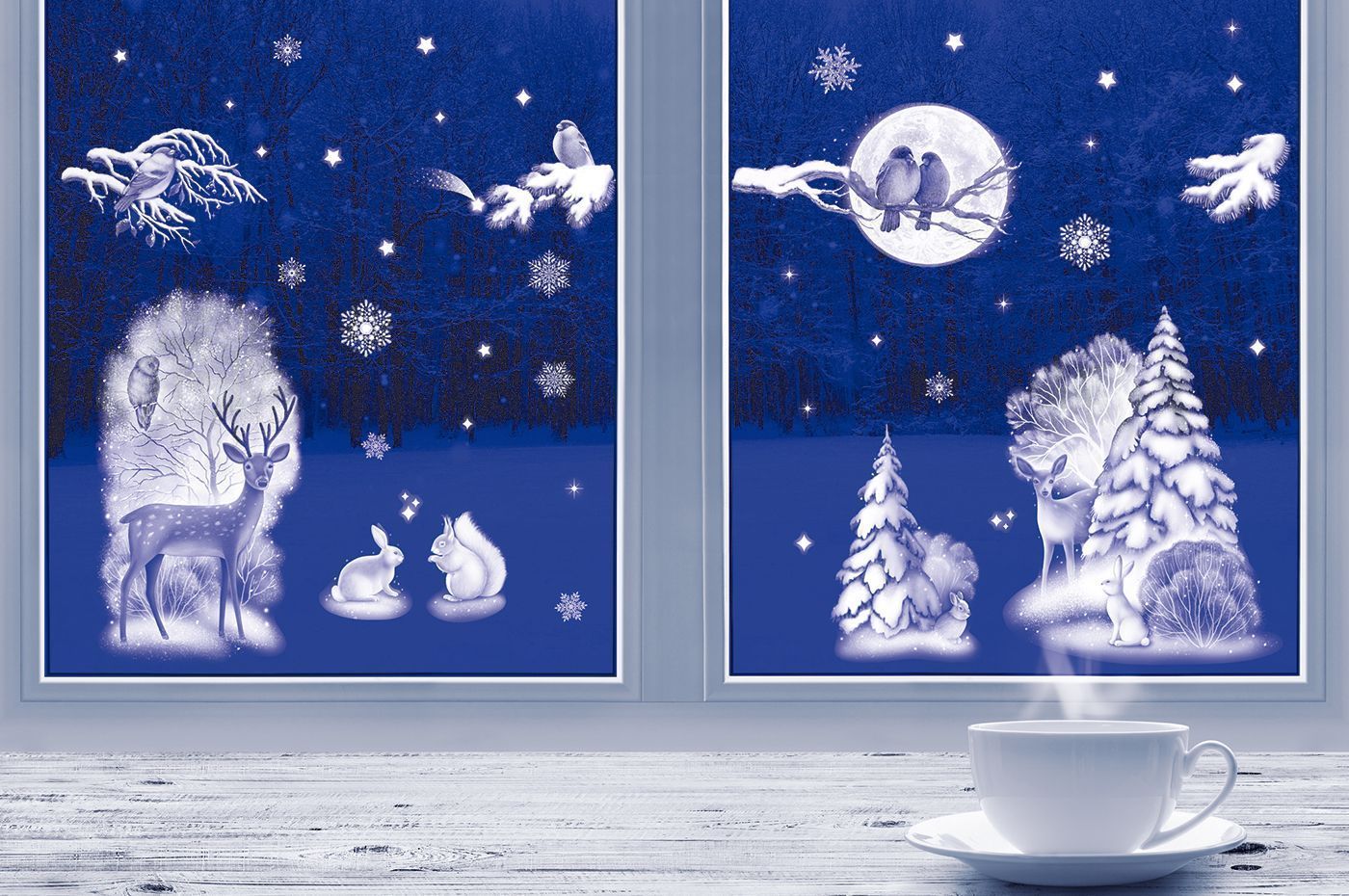 Наклейка оформительская формата А3 из коллекции «В ожидании новогодних чудес» представляет собой декоративное изделие из самоклеящейся пленки с двусторонним изображением зимнего пейзажа с лесными животными, елками и снежинками, выполненного в холодной голубо-белой гамме. Материал рассчитан на наклеивание на гладкие, сухие и чистые поверхности, в том числе стекло, зеркала, витрины, пластиковые и ламинированные панели, что делает изделие удобным для использования в торговых залах, офисах, кафе и жилых помещениях. Точная длина готового изделия составляет 470 мм, ширина 332 мм, что позволяет заранее планировать раскладку элементов на витринном стекле или в окне стандартного размера и оптимизировать расход при серийном оформлении. Пленка обладает достаточной плотностью для сохранения формы и устойчивости к механическим воздействиям при аккуратной эксплуатации, не требует дополнительного клея и не оставляет следов при корректном снятии, что важно при сезонном декорировании коммерческих пространств. Двустороннее исполнение обеспечивает одинаково выразительный вид композиции как изнутри, так и снаружи помещения, поэтому наклейка подходит для оформления входных групп и панорамных окон, где важна читаемость рисунка с обеих сторон. Отсутствие текстовых надписей делает изделие универсальным для розничной и корпоративной среды, независимо от языка коммуникации и формата новогодних акций. В упаковке 1 единица, что удобно при точном подсчете потребности для сетевых магазинов и небольших торговых точек; компактный плоский формат облегчает хранение, транспортировку и выкладку в торговом зале. Наклейка может использоваться как самостоятельный центральный элемент оформления или сочетаться с другими новогодними наборами серии для создания единой визуальной концепции витрин, reception-зон и домашних интерьеров.