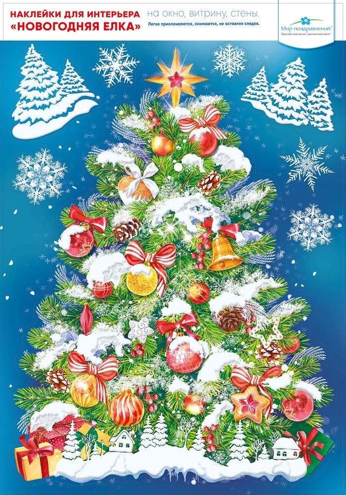 Наклейка оформительская формата А3 изготовлена из самоклеящейся пленки и предназначена для быстрого сезонного декорирования интерьеров. Изделие представляет собой двустороннее изображение новогодней ели с игрушками, подарками, снежинками и зимним пейзажем, за счет чего композиция одинаково читается как с внутренней, так и с внешней стороны стекла и подходит для оформления витрин, окон, входных групп, стен и перегородок. Пленка имеет стабильную геометрию, длина готового изделия составляет 474 мм, ширина 330 мм, что важно при планировании выкладки и комбинировании с другими элементами новогоднего ассортимента. Отделка выполнена с применением пластизоля, создающего рельефные акценты и повышающего износостойкость печати при контакте с поверхностью и в процессе транспортировки. Материал рассчитан на наклеивание на гладкие, сухие, непористые основания, допускает кратковременное хранение в рулонах или в плоском виде без деформации рисунка, удобен для складских операций и групповой отгрузки. Нейтральная по содержанию, без надписей, композиция подходит для использования в торговых залах, офисах, образовательных и досуговых учреждениях, а также в жилых помещениях, где требуется создать тематическое новогоднее оформление без привязки к конкретным акциям или мероприятиям. Оптимальный формат и один элемент в упаковке упрощают учет, позволяют точно планировать количество комплектов на объект и использовать наклейку как самостоятельный декоративный центр или в составе комплексного оформления витрины или интерьера.
