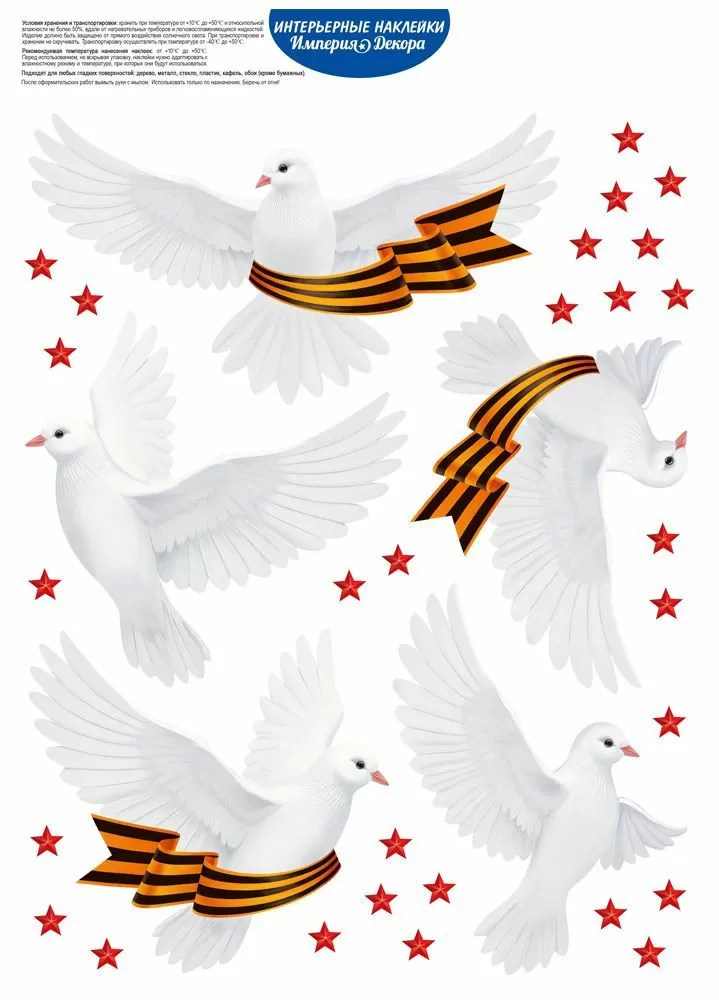 Оформительские наклейки «Голуби Победы» (звезды, голуби с гергиевской лентой)