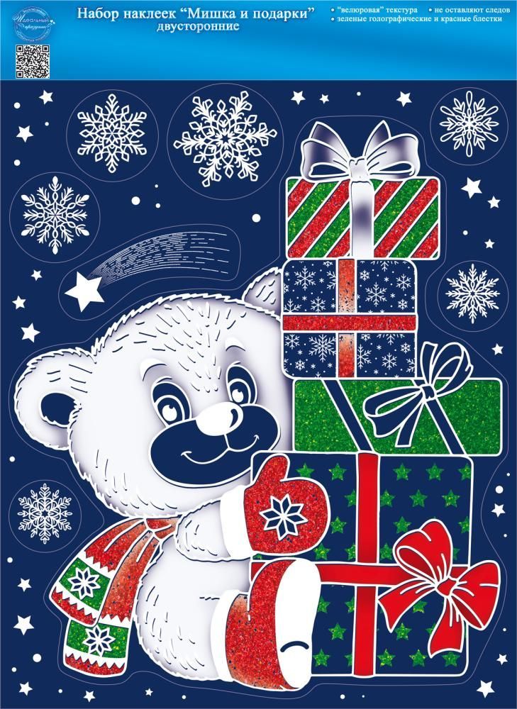 Наклейка оформительская формата А4 изготовлена из самоклеящейся пленки и предназначена для оформления витрин, дверей, стеклянных и гладких поверхностей в торговых залах, офисах и жилых помещениях. Изделие представляет собой двустороннее изображение белого медвежонка с новогодними подарками, дополненное снежинками и декоративными элементами, что обеспечивает читаемость сюжета как с внутренней, так и с внешней стороны стекла и делает наклейку удобной для использования в витринном оформлении. Размер готового изделия 332 × 242 мм позволяет точно планировать размещение на ограниченных по площади поверхностях и комбинировать наклейку с другими элементами декора в единой композиции. Пленка обладает достаточной плотностью для сохранения формы при наклеивании и снятии, устойчива к деформации и не требует дополнительного крепежа, что важно при массовом оформлении торговых точек и временных экспозиций. Декорирование выполнено с применением зеленых блесток в лаке, красных блесток в лаке и пластизольных элементов, за счет чего изображение остается ярким при различном освещении, в том числе при витринной подсветке, и не теряет декоративных свойств в течение сезона эксплуатации. Отсутствие текста и надписей делает наклейку универсальной для использования в сетевой рознице, HoReCa и офисных пространствах, независимо от фирменного стиля и языка коммуникации. В розничном применении изделие подходит для новогоднего оформления окон, детских комнат, домашних интерьеров, при этом двустороннее изображение обеспечивает аккуратный внешний вид как внутри помещения, так и со стороны улицы. Наклейка поставляется по 1 штуке, удобна для поштучного учета, фасовки и дозакупки, легко хранится и транспортируется в стандартных коробах без риска смятия при соблюдении базовых условий по влажности и температуре.