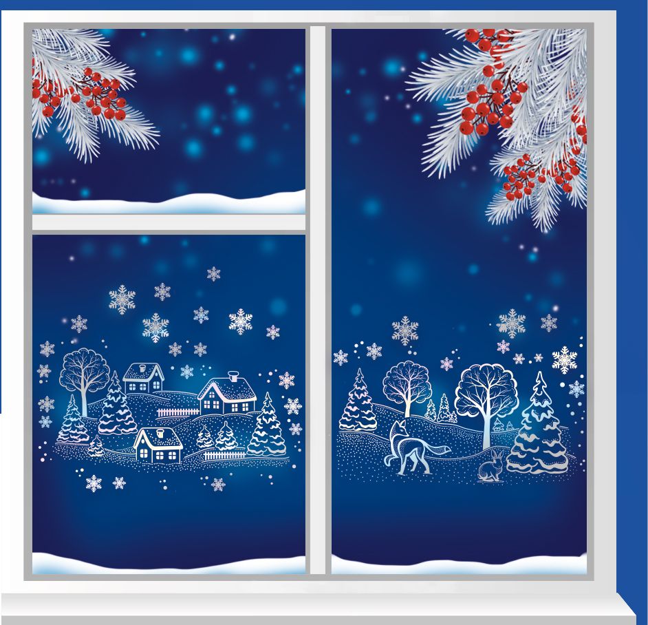 Наклейка оформительская формата А4 «Зимняя сказка» предназначена для создания сезонного оформления витрин, офисных и торговых помещений, а также жилых интерьеров. Основа изделия – самоклеящаяся пленка, обеспечивающая надежное сцепление с гладкими поверхностями: стеклом, зеркалами, ламинированными панелями, пластиковыми перегородками. Пленка отличается стабильной геометрией, не деформируется при наклеивании и снятии, что важно при серийном использовании в сетевых магазинах и при ежегодном обновлении декора. Изображение двустороннее: зимний пейзаж с домами, деревьями, лесными животными и рассыпанными снежинками хорошо читается как с внутренней, так и с внешней стороны стекла, позволяя оформлять витрины и окна без потери декоративного эффекта. Голографическая серебряная фольга создает мерцающий эффект при искусственном и естественном освещении, что повышает заметность оформления в торговом зале и на фасадных витринах, при этом рисунок выполнен без надписей и не содержит привязки к конкретному событию, что расширяет период использования и упрощает интеграцию в существующие концепции бренда. Размер готового изделия 332 × 237 мм обеспечивает удобство транспортировки и хранения: лист не требует дополнительной подрезки для стандартных стеллажей и коробов, допускает размещение в европодвесах и лотках у кассовой зоны. Плотность и структура пленки подобраны таким образом, чтобы наклейка сохраняла целостность при многократных перепадах температуры и влажности, характерных для витрин и входных групп, а также не оставляла следов клея при аккуратном удалении. Для розничного использования наклейка позволяет быстро оформить окна квартиры, детской комнаты или школьного кабинета: отдельные элементы композиции можно располагать произвольно, формируя собственный сюжет и подстраивая декор под размеры стекла или дверной вставки. В одной упаковке – 1. Такое исполнение удобно для точного расчета количества при оптовых закупках и формировании ассортимента сезонных декоративных товаров.