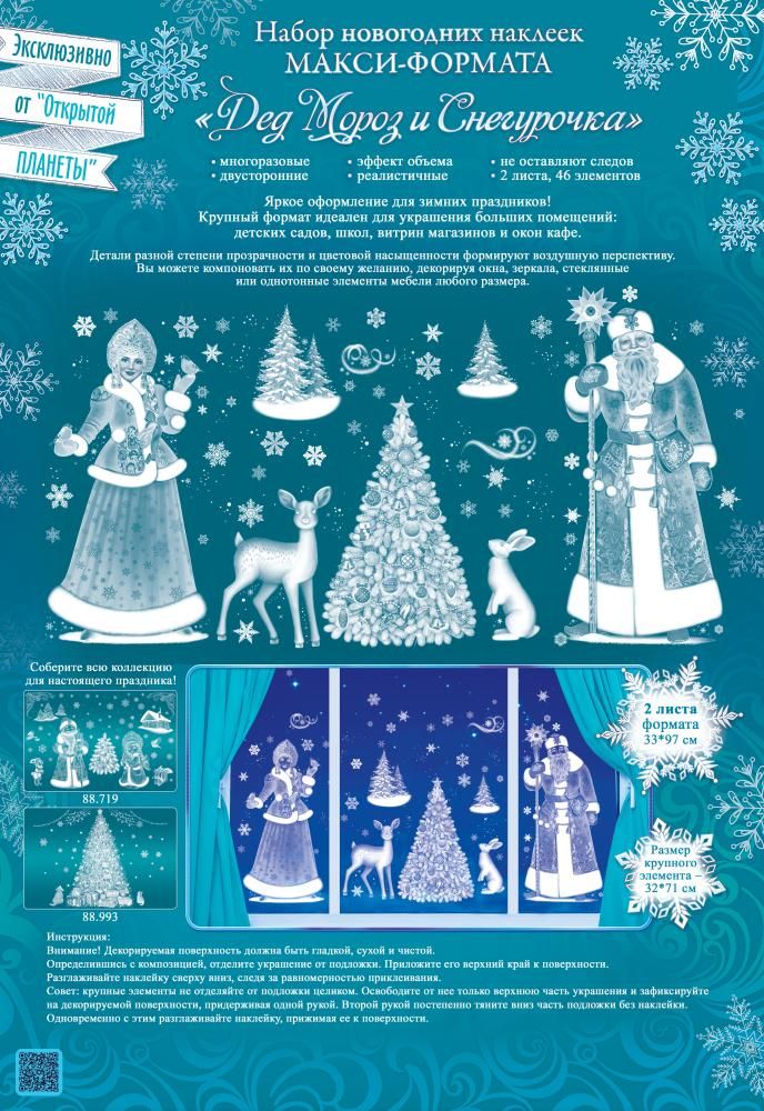 Наклейка оформительская формата А1 «Дед Мороз и Снегурочка» представляет собой крупное декоративное изделие для сезонного оформления витрин, залов, входных групп, стеклянных перегородок и других ровных поверхностей. Изготовлена из ПВХ, что обеспечивает достаточную плотность материала, устойчивость к механическим воздействиям при наклеивании и снятии, а также сохранение формы на протяжении всего срока эксплуатации. Поверхность без отделки, с применением белил, рисунок выполнен в холодной зимней гамме с детализированными изображениями Деда Мороза, Снегурочки, новогодней ели, оленей и снежинок, что позволяет использовать изделие как самостоятельный композиционный центр или как часть комплексного оформления помещения. Длина готового изделия 970 мм, ширина 664 мм, что удобно для декорирования стандартных оконных проемов, витрин и панелей без дополнительной подгонки по размеру. Отсутствие текста внутри делает наклейку универсальной для применения в детских садах, школах, торговых и офисных пространствах, а также в частных интерьерах, не привязывая оформление к конкретным надписям или языку. Материал подходит для серийного использования в сетевых магазинах и учреждениях: изделие компактно сворачивается для хранения и транспортировки, не требует сложных условий складирования, совместимо с другими плоскими новогодними декорациями из ПВХ. При наклеивании рекомендуется гладкая, сухая и чистая основа; при соблюдении этих условий изображение сохраняет четкость контуров и равномерность прилегания по всей площади. Формат А1 облегчает планирование выкладки для оптовых закупщиков: наклейка закрывает значимую часть поверхности, позволяет быстро создать законченный новогодний сюжет без привлечения дополнительных элементов и уменьшает время на оформление торговых точек и общественных пространств. В упаковке 1.