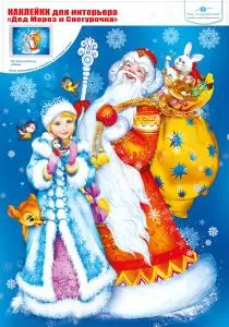 Прекрасной зимней сказкой приходят в наши дома новогодние праздники, а вместе с ними Дед Мороз и Снегурочка с волшебными снежинками и большим мешком самых желанных подарков! Ведь только с ними праздник становится по-настоящему чудесным! Яркие цветные наклейки для интерьера «Дед Мороз и Снегурочка» легко приклеиваются на окно, витрину, стены, снимаются, не оставляя следов. 5 наклеек (Дед Мороз и Снегурочка и 4 снежинки) на листе 330х474 мм.