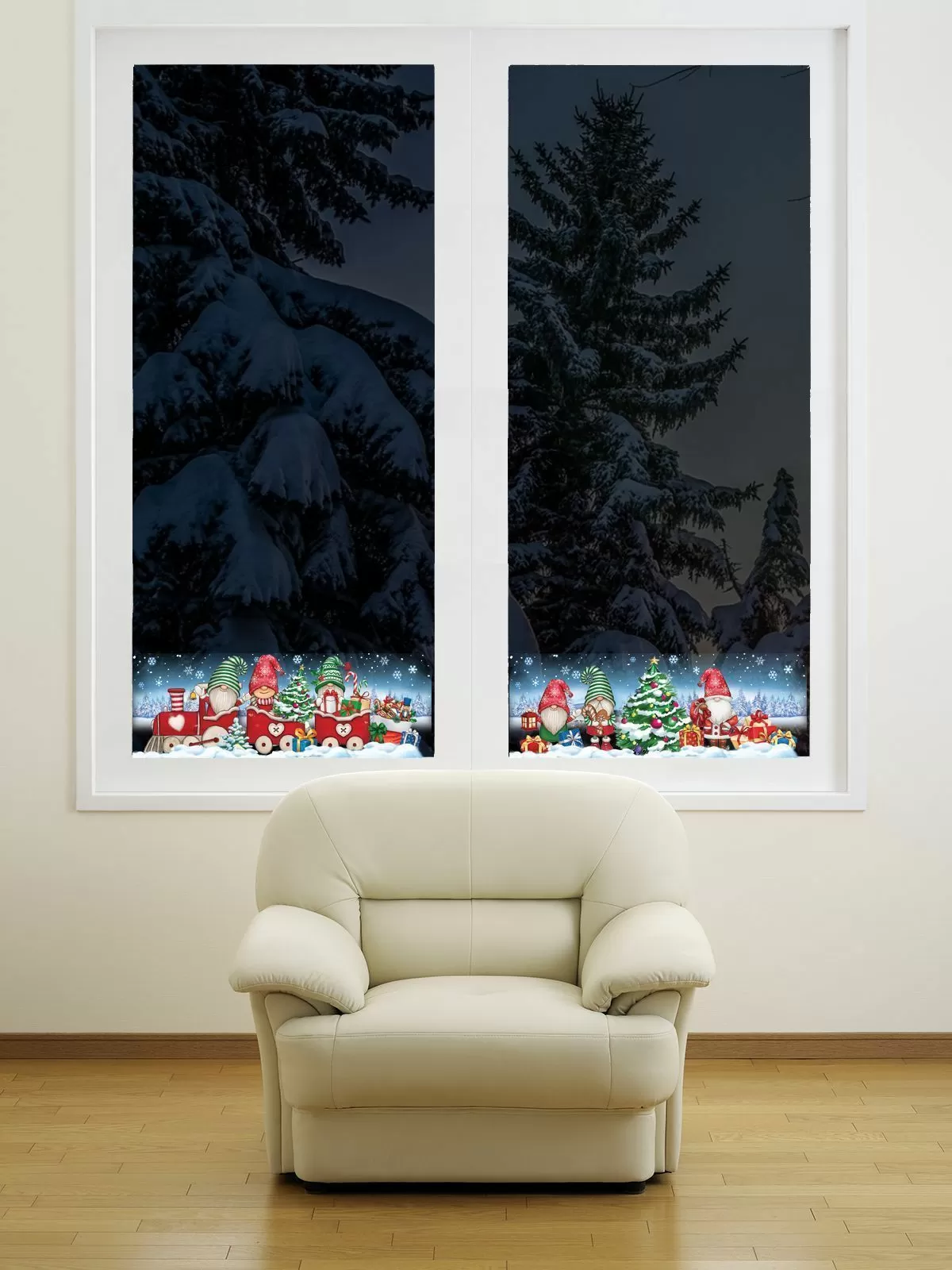 Новогодние наклейки-бордюры на окна «Новогодний экипаж»