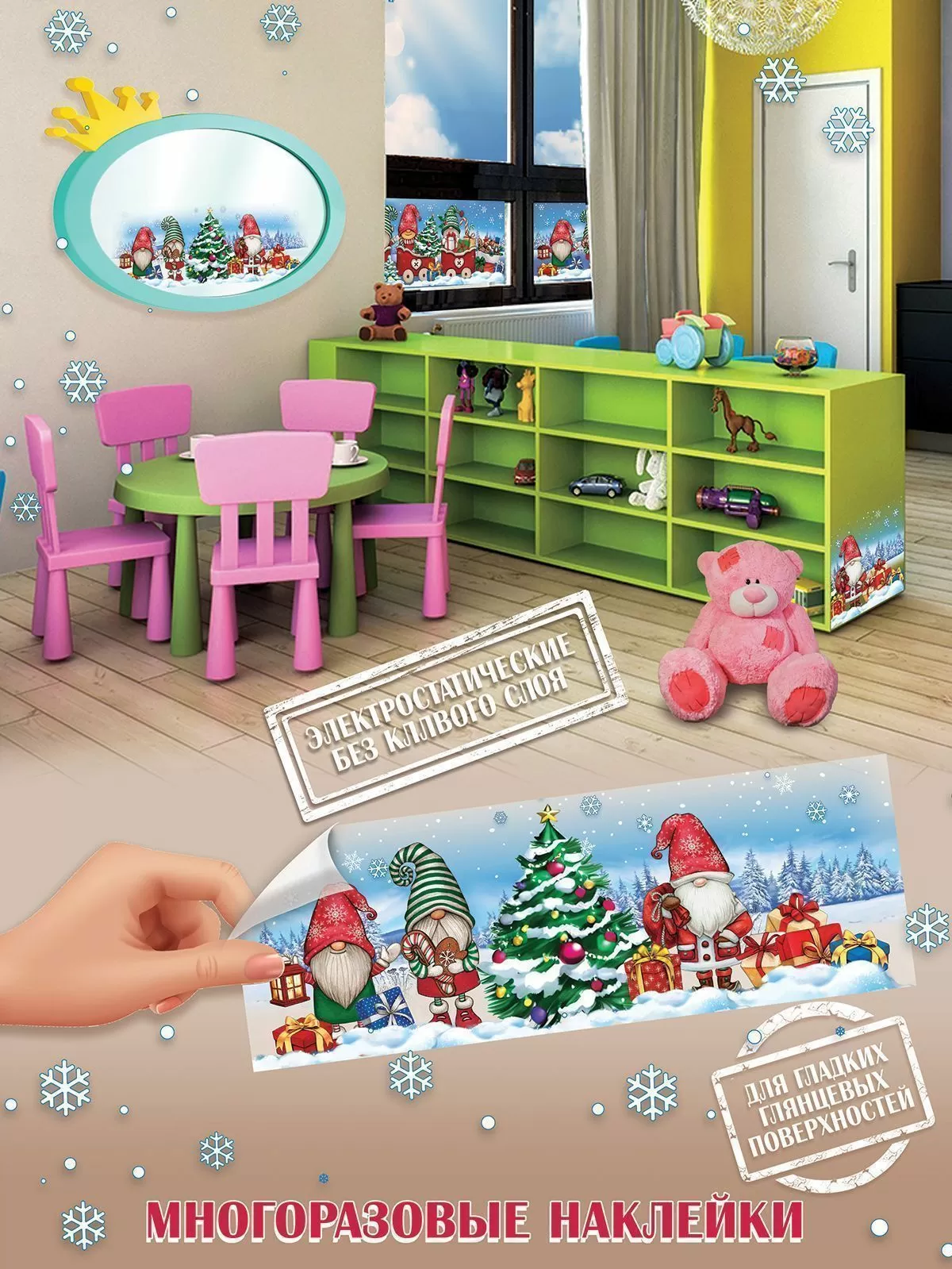 Яркие новогодние двусторонние матовые наклейки-бордюры - отличный способ оформить дом к самому долгожданному торжеству! Идеально подходят для украшения стен, зеркал или окон на Новый год, по желанию, можно украсить автомобиль. Наклейки легко снимаются с поверхности, не оставляя следов. Наклейки - многоразовые, вы с легкостью можете переклеивать их с одной поверхности на другую. В каждой упаковке - 2 больших наклейки размером 471х168 см.