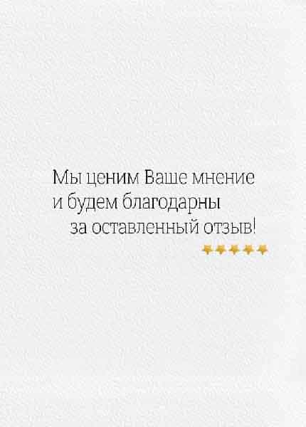Набор открыток формата А7 представляет собой комплект из 100 двусторонних изделий с готовым текстом «Спасибо за заказ», выполненным в нейтральной современной графике с золотистым акцентом и контурным изображением цветка. Открытки изготовлены из плотного картона, обеспечивающего устойчивость к сгибам и истиранию при регулярном использовании в потоке отправлений, а также сохранение первоначального вида при хранении на складе и транспортировке. Длина готового изделия составляет 79 мм, ширина 55 мм, что удобно для вложения в почтовые отправления, коробки, крафт-пакеты и курьерские пакеты без изменения стандартных габаритов упаковки. Двусторонняя печать позволяет использовать лицевую сторону как благодарственный элемент сервиса, а оборотную — для краткой ручной надписи, контактной информации, штампа компании или индивидуального послания клиенту. Отсутствие дополнительной отделки упрощает штабелирование, уменьшает скольжение стопок и снижает риск повреждений покрытия при массовой фасовке. Нейтральный визуальный стиль без привязки к конкретной тематике делает набор универсальным для использования в интернет-магазинах, шоурумах, небольших производственных мастерских, сервисных компаниях и точках самовывоза, а также в розничной сфере для сопровождения подарков и частных отправлений. Компактный формат и единый дизайн облегчают планирование расхода и учет в оптовых закупках, позволяют поддерживать единый стандарт оформления заказов в разных подразделениях или торговых точках. Количество в упаковке: 1. Количество элементов: 100. Материал: картон. Изображение: двустороннее. Отделка: без отделки. Текст: с текстом.